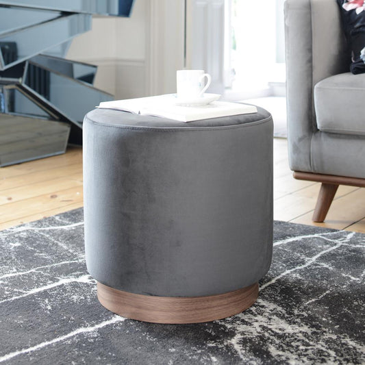 DFS-HO2-05575 Grade-B DFS Duo Footstool With Walnut Trim in Velvet Grey RRP £59