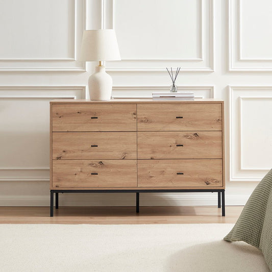 DUS-GOL-01214 Grade-B Dusk Willow 6 Drawer Chest - Oak Effect RRP £219