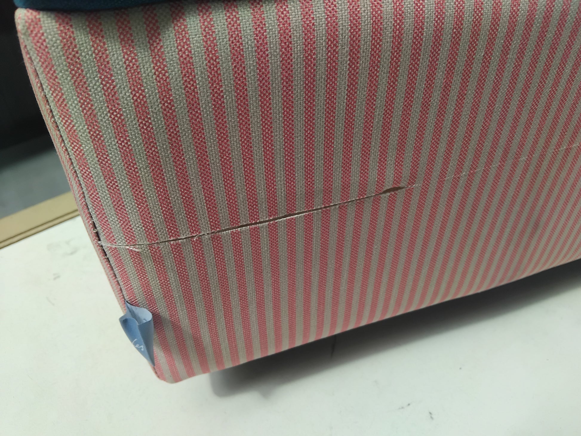 - DFS Thornton Storage Ottoman in Ticking Stripe Red RRP £429 - RIP IN THE BACK AND A LITTLE DIRTY