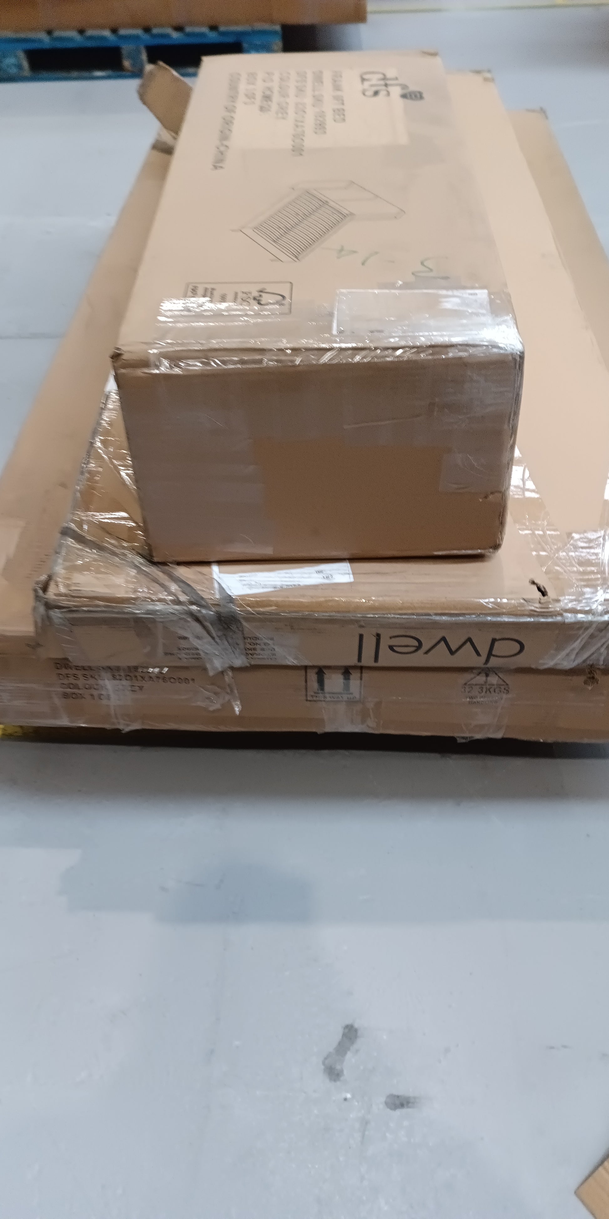 Empty pallets can be left on site when purchases are collected, although this is not a requirement. All other packaging is purchased with the items and is the property of the buyer, as such it must be taken when the order is collected.