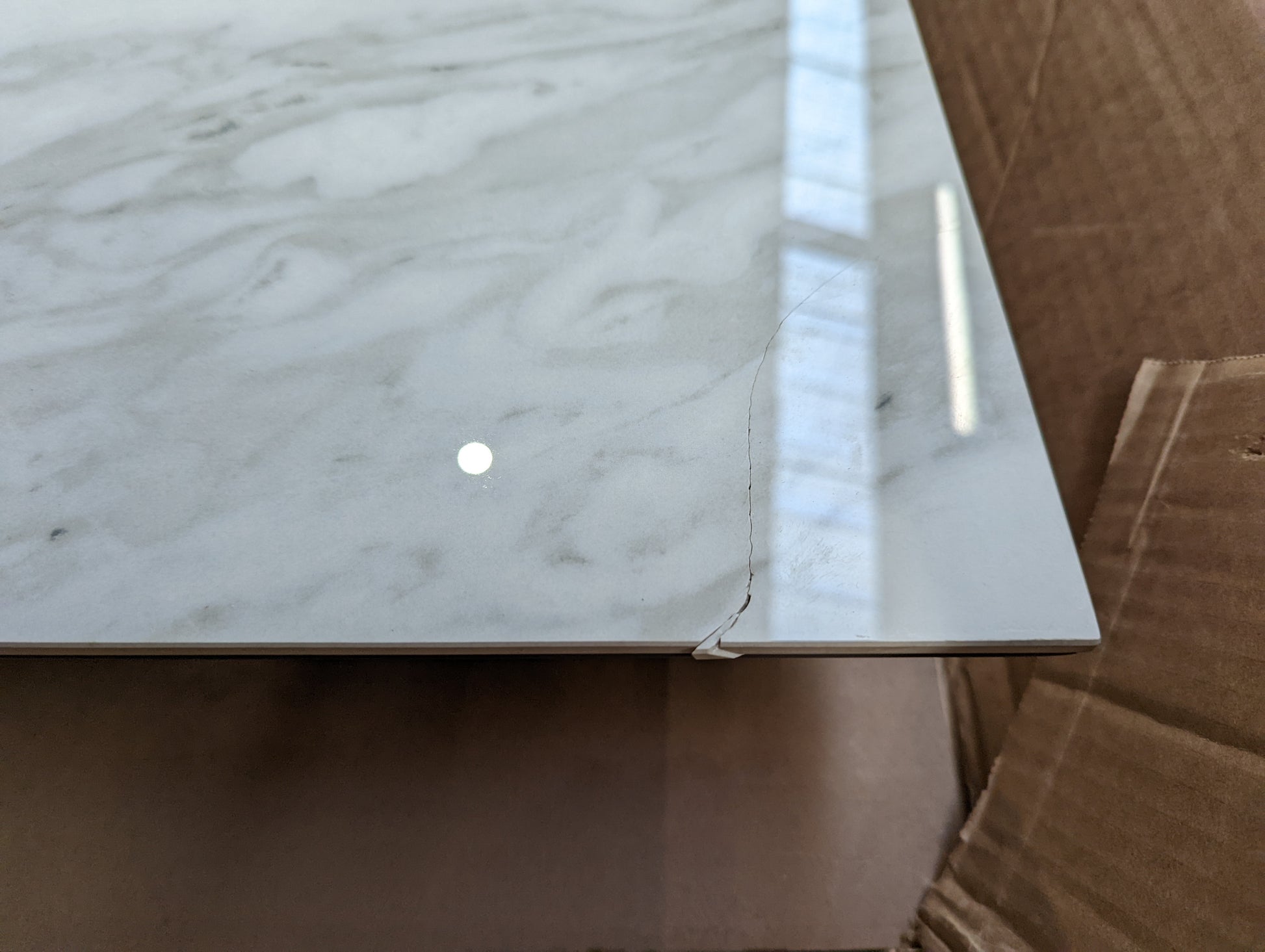 - DFS Teno Extending 6-8 Seater Dining Table White RRP £899 - cracked on one side , chipped on the other , missing fixings