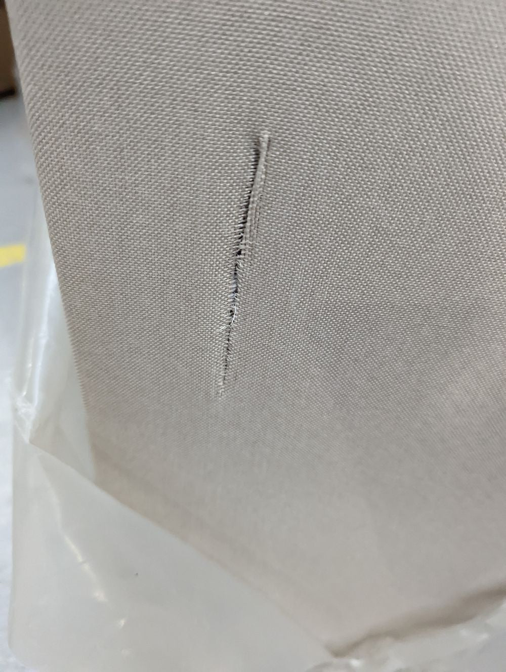 has rip in side of bed base and 1 draw front is snapped and out of shape also missing feet and fixings