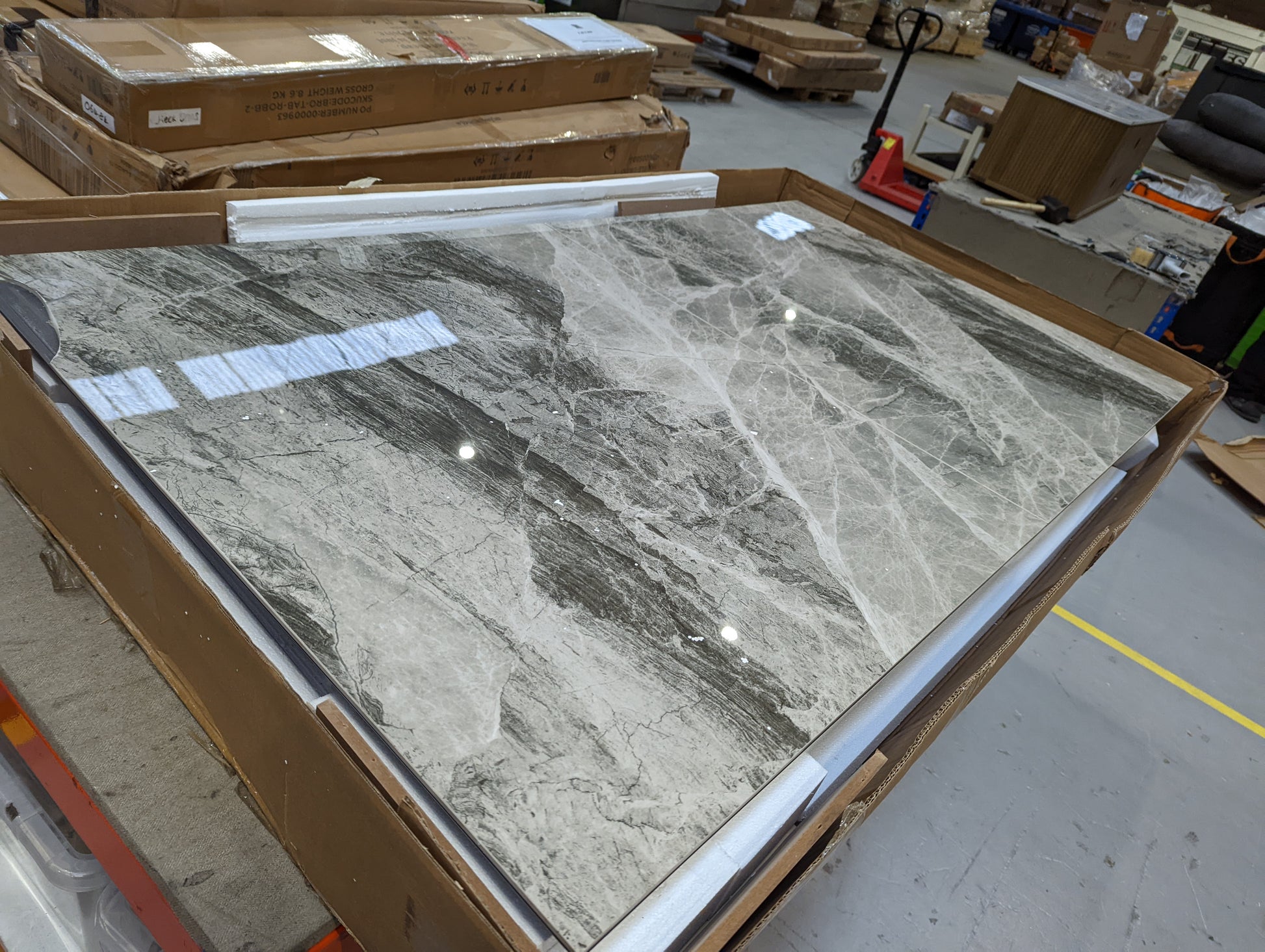 has cracks and chip on 1 side and a small piece of marble missing from the other as dshown in images also there no bolts for attaching the legs