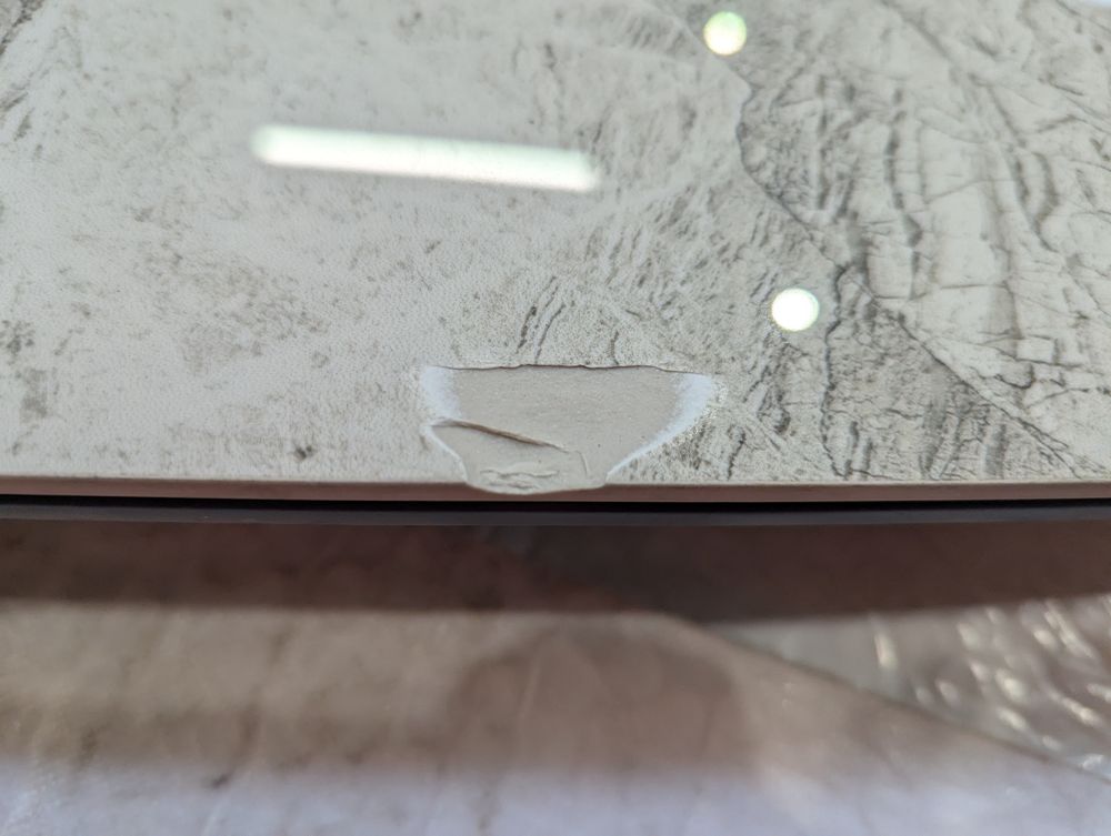 chip to the edge and crack to table top