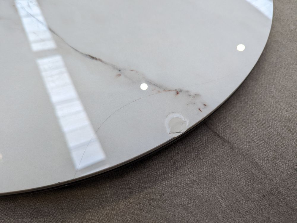 Table top is cracked and chipped