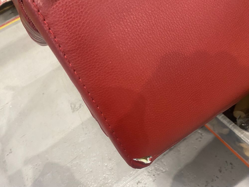 Numerous rips in leather - irreparable. Footblock missing - Transit Damage