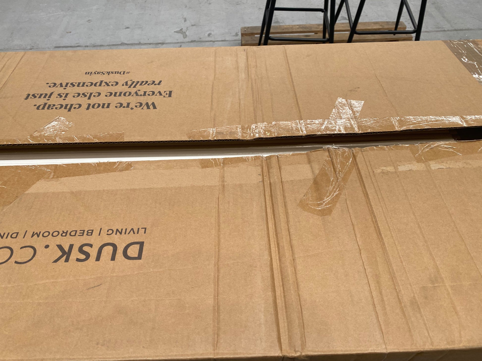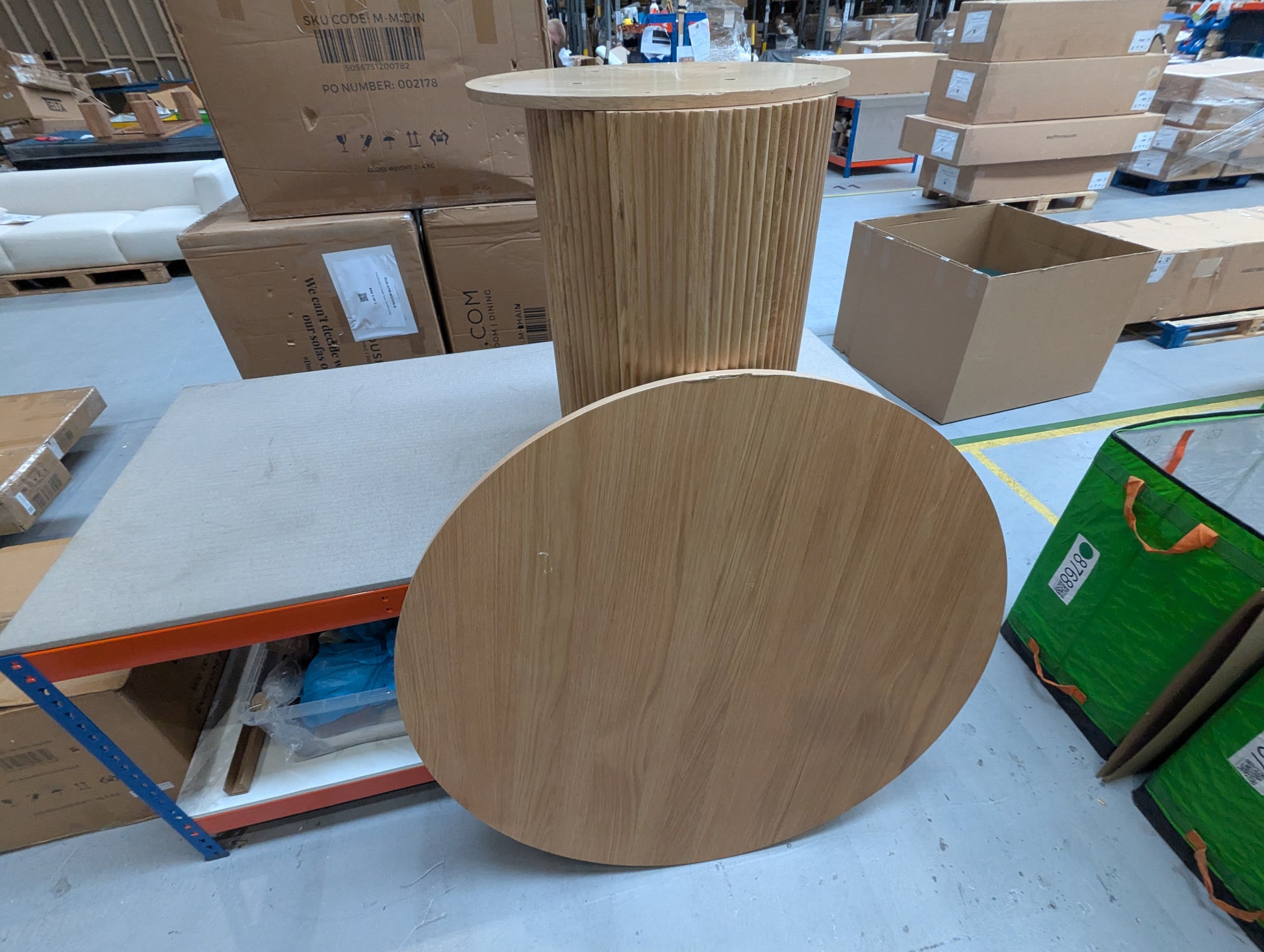 - Dusk Hattie Panel 4-6 Seater Dining Table - Natural RRP £329 - table top surface is damaged and. no fittings.