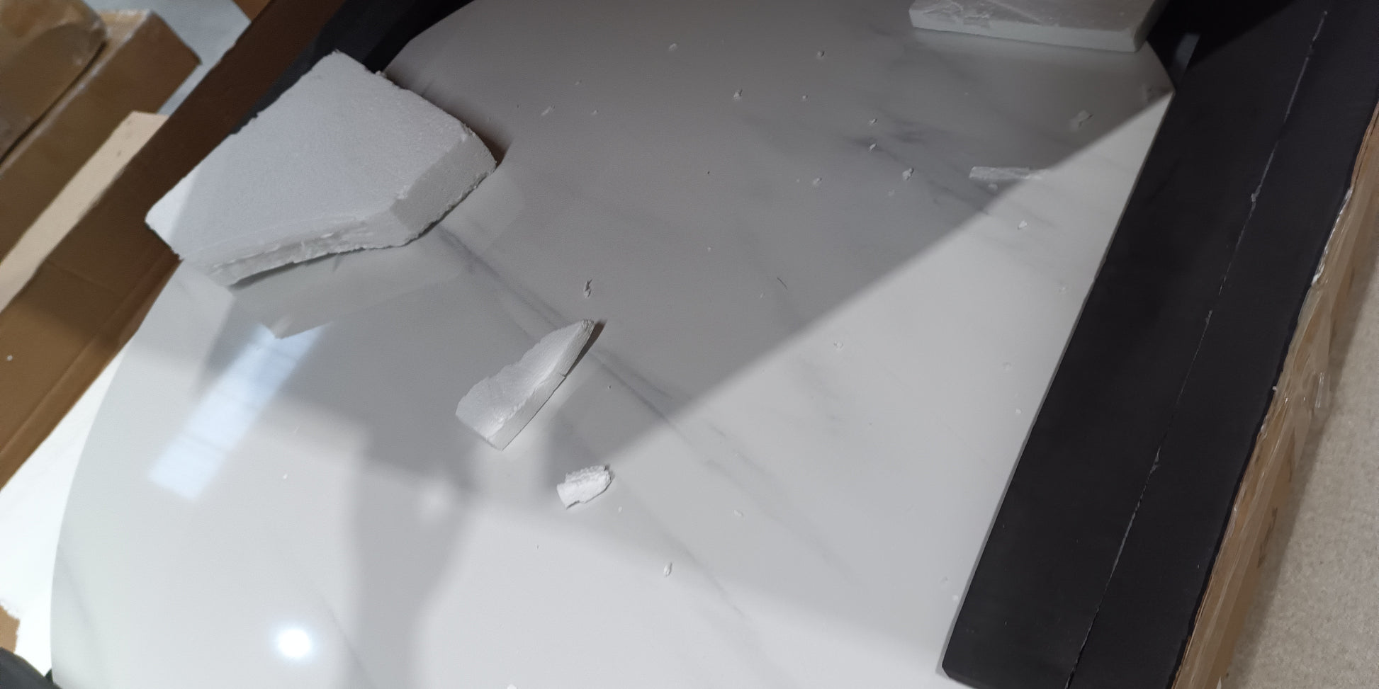 - Dusk Lila Marble Effect 90cm 2-3 Seater Dining Table White RRP £349 - cracked