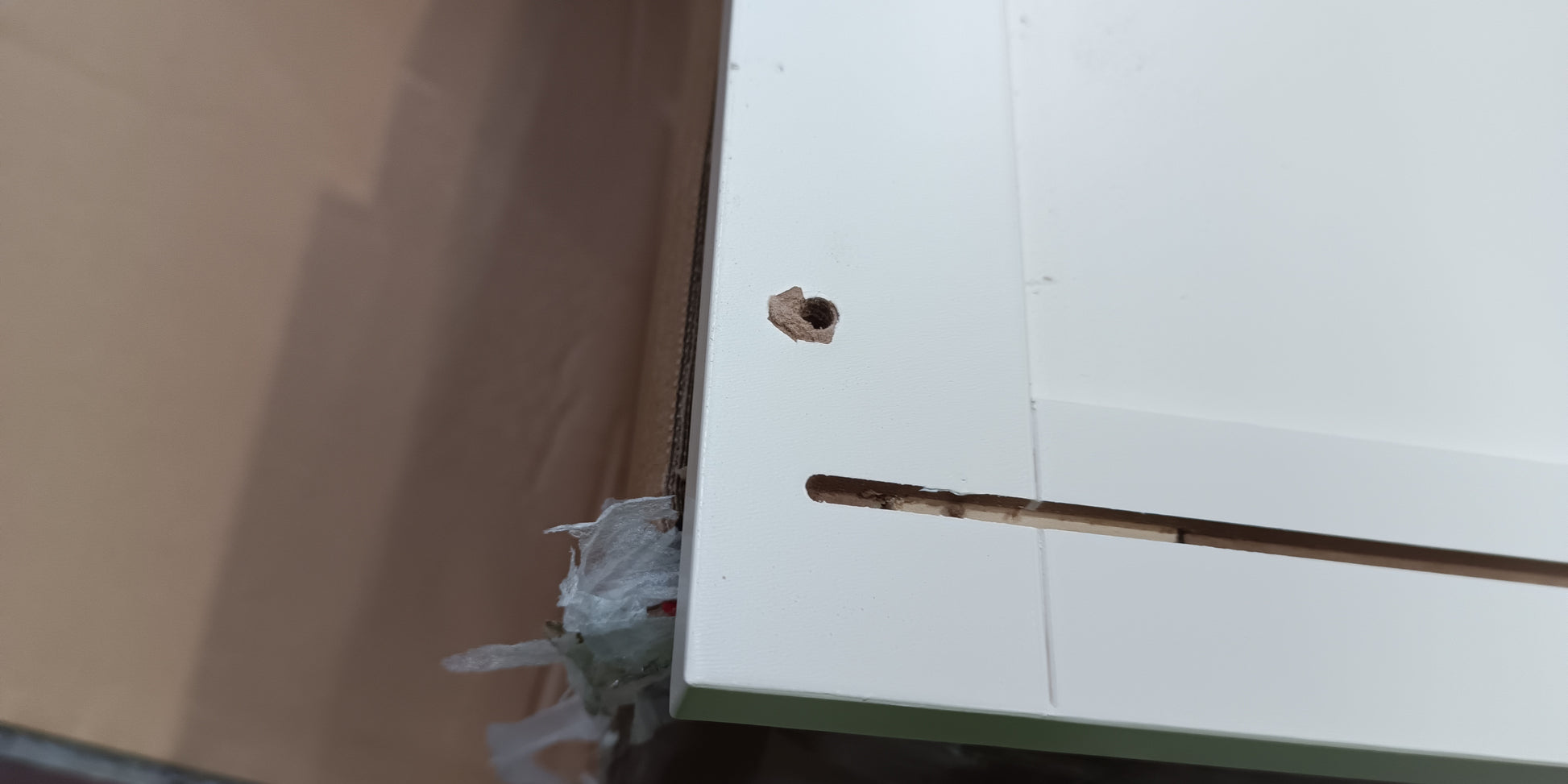 - Dusk Isla 6 Drawer Chest - Stone RRP £339 - Broken and damaged parts. Some previous assembly is evident that has damaged the holes on the drawer fronts