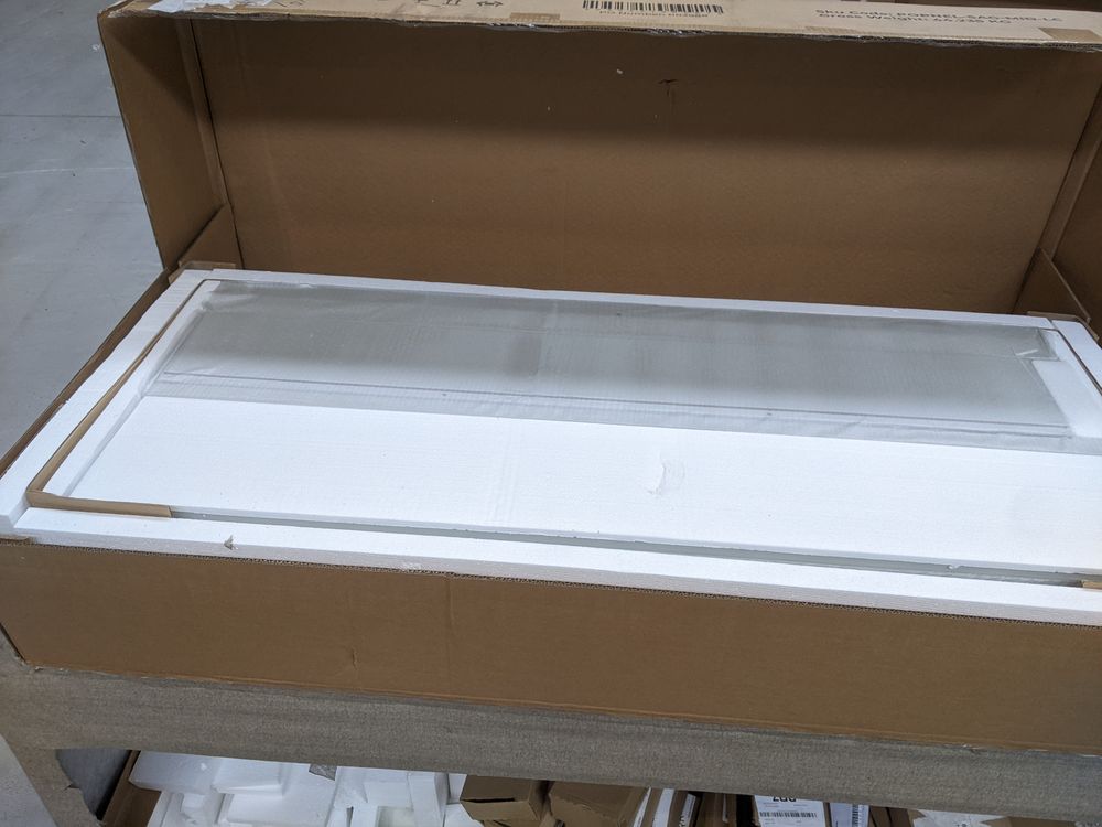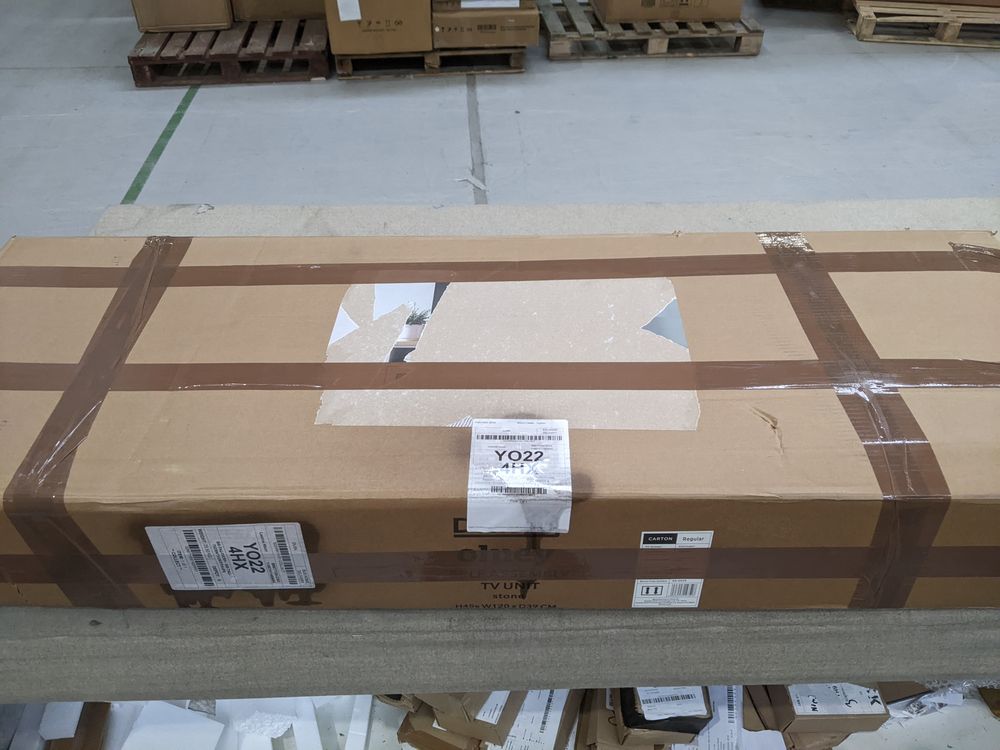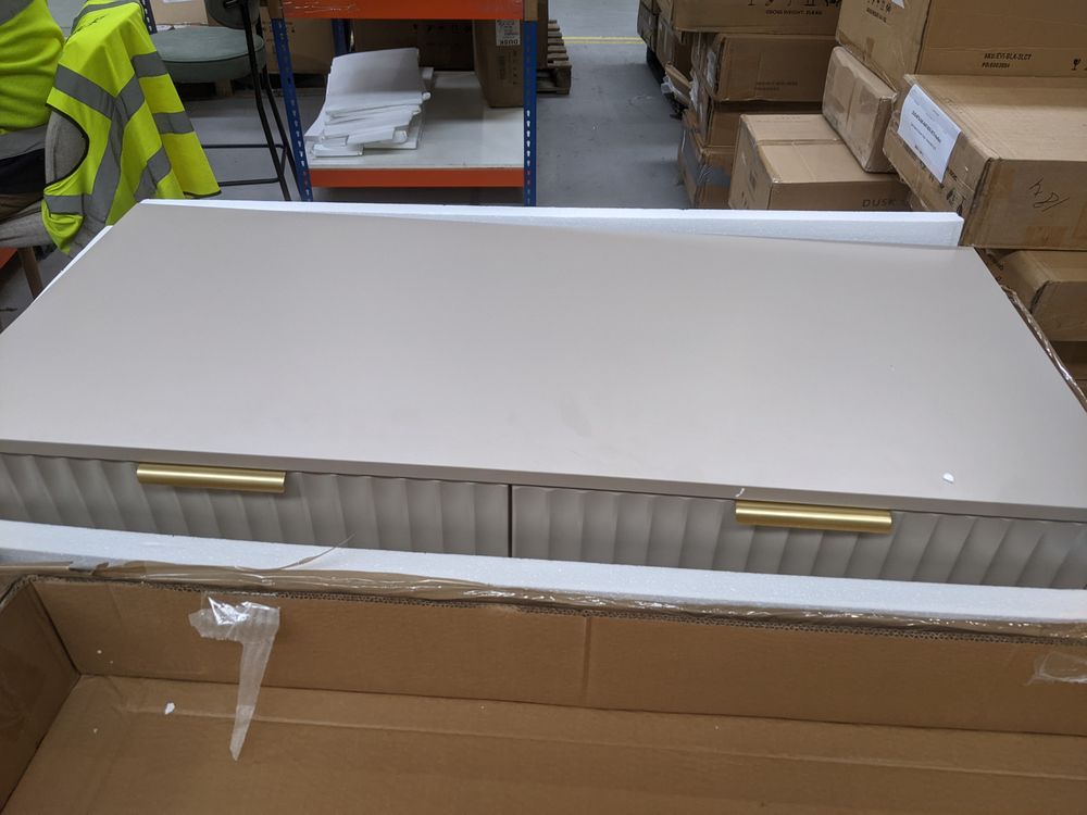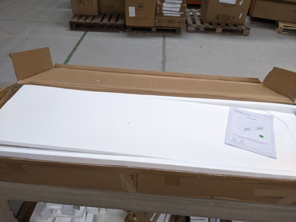 - Dusk Isla 140cm TV Unit - Stone RRP £199 - damaged , pre assembled . parts missing .