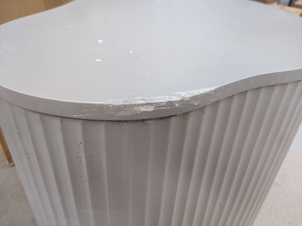 - Dusk Evie Irregular Side Table - Taupe RRP £95 - damage to top , chipped wood .