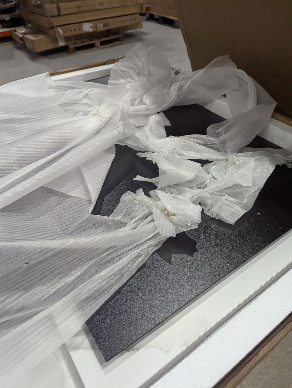 - Dusk Evie Large Sideboard - Warm White RRP £349 - missing all fittings and damaged on the corners as shown and missing insructions and some parts hence the grade