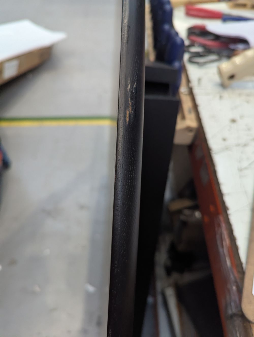 - Dusk Heidi Solid Oak 4-6 Seater Round Dining Table - Black RRP £579 - missing fittings and damaged on the edges as shown