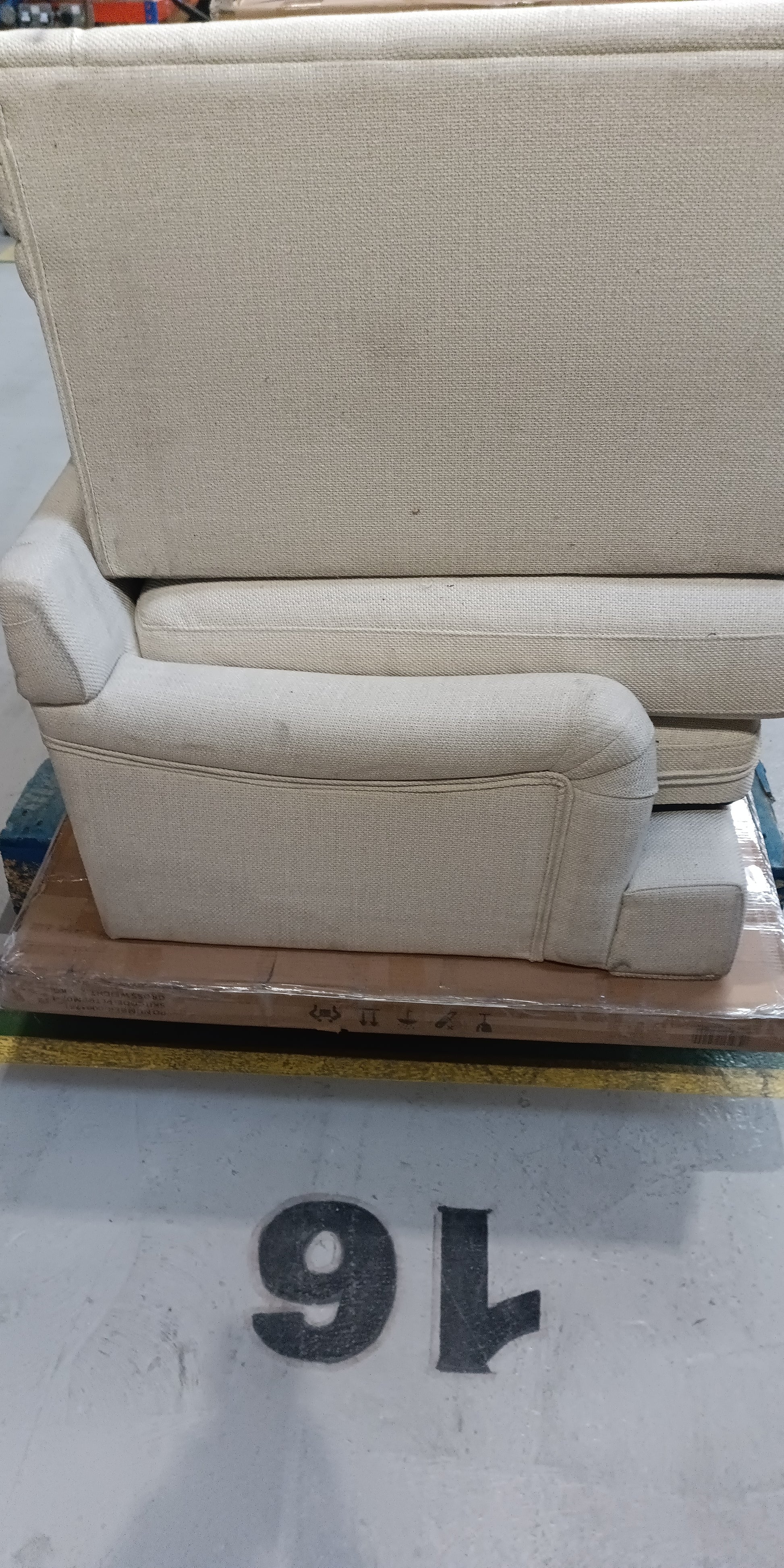 - Dusk Hampshire Right Hand Chaise Sofa - Beige RRP £1199 - The sofa is heavily soiled and dirty and has badly plucked fabric on the chaise cushion. There are no legs with the sofa.