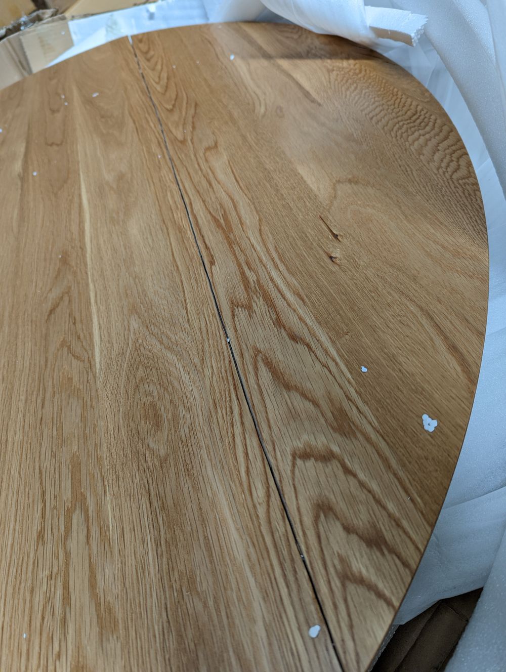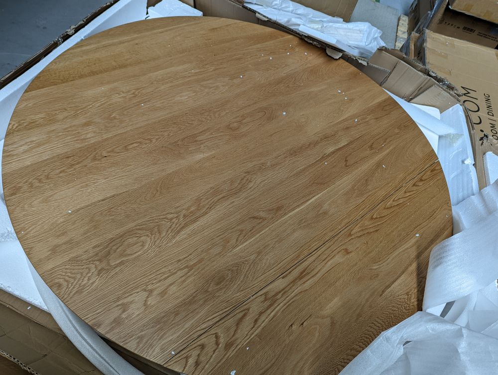 - Dusk Heidi Solid Oak 4-6 Seater Round Dining Table - Natural RRP £429 - Top table surface broken.
