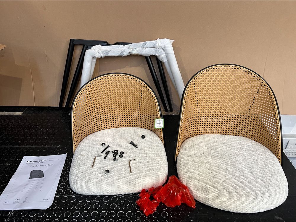 - Dusk Phoebe Set Of 2 Dining Chairs - Boucle- Ivory/Black RRP £199 - Item shows clear signs of previous assembly attempt, item is missing most its fixings.
