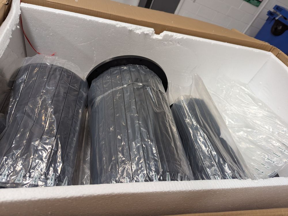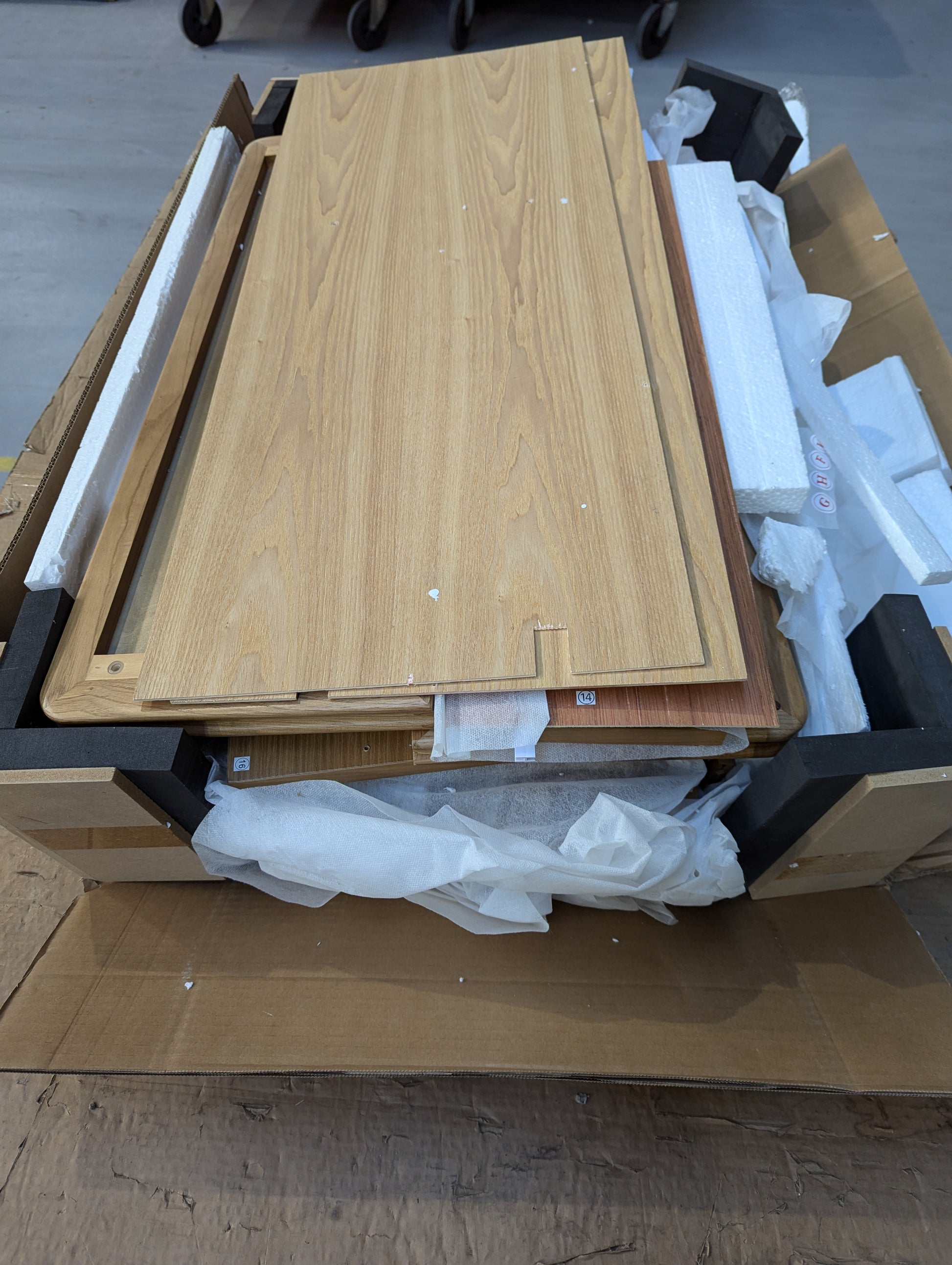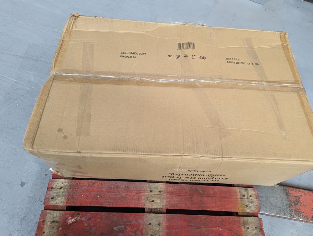 Empty pallets can be left on site when purchases are collected, although this is not a requirement. All other packaging is purchased with the items and is the property of the buyer, as such it must be taken when the order is collected.