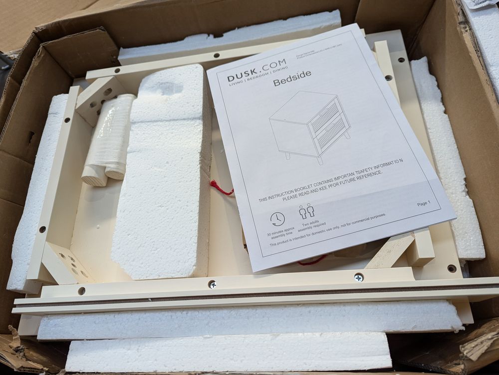 - Dusk Piper Bedside Table - Light Wood RRP £112 - been assembled and come back, box damaged