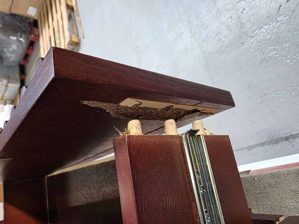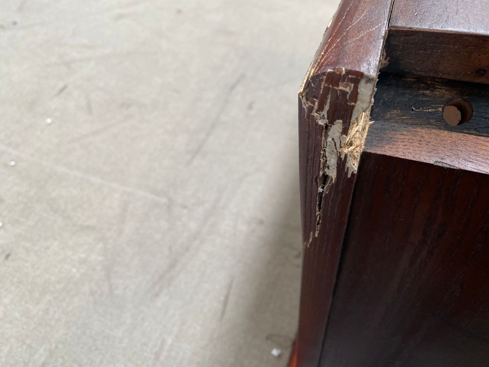 - Dusk Elena Wood Veneer 2 Drawer Bedside Table - Mahogany RRP £190 RRP £190 - inside bottom draw badly dammaged lid is coming away