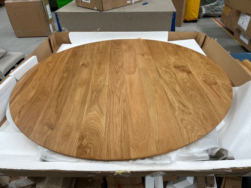 - Dusk Heidi Solid Oak 4-6 Seater Round Dining Table - Natural RRP £429 - Table top has crack. no fittings.