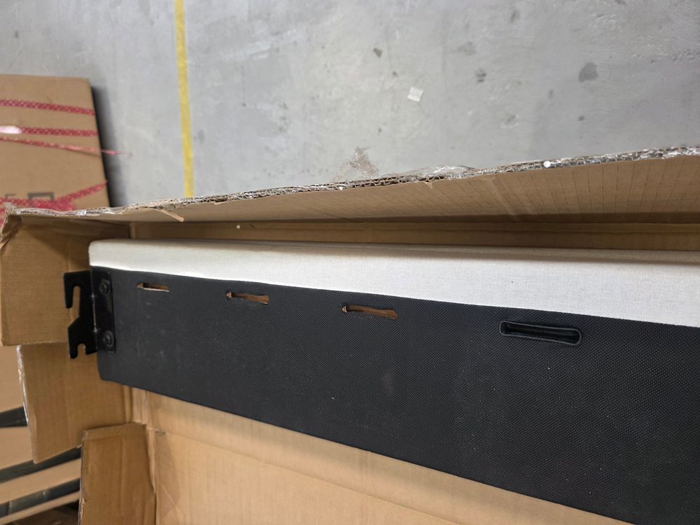 - Dusk Ascot Ottoman King Size Storage Bed - Natural Stripe RRP £499 - Bent horizontal frame parts, severe damage to the headboard