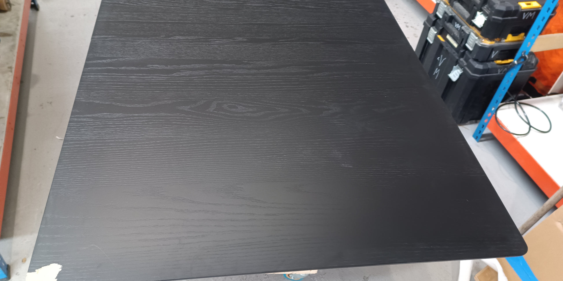 - Dusk Heidi Solid Oak 4-8 Seater Extendable Dining Table - Black RRP £599 - Table has a large piece of the table top broken off, there are no leg fittings.