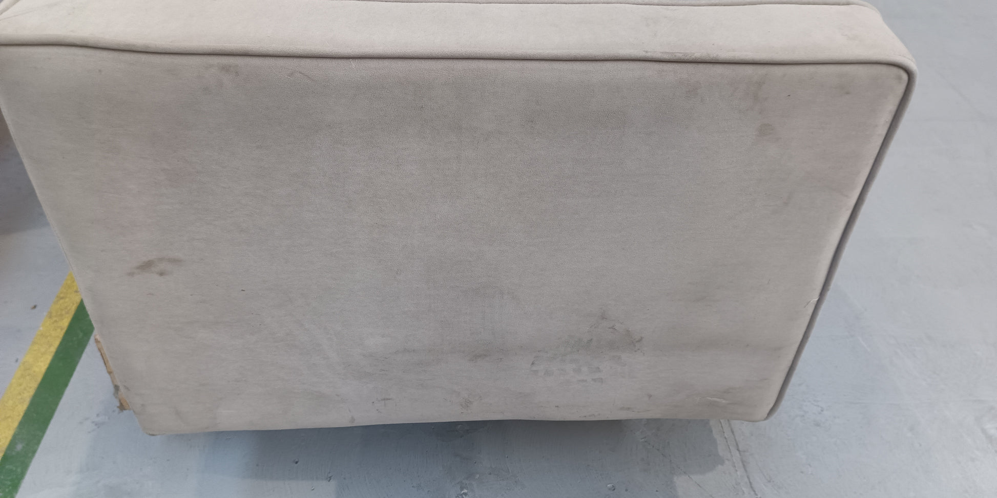- Dusk Madison 3 Seater Sofa - Sand RRP £759 - One of the sides the timber frame is broken inside, there are no legs and the sofa is covered in dog hair and multiple large fluid stains of unknown origin. Smells really bad.