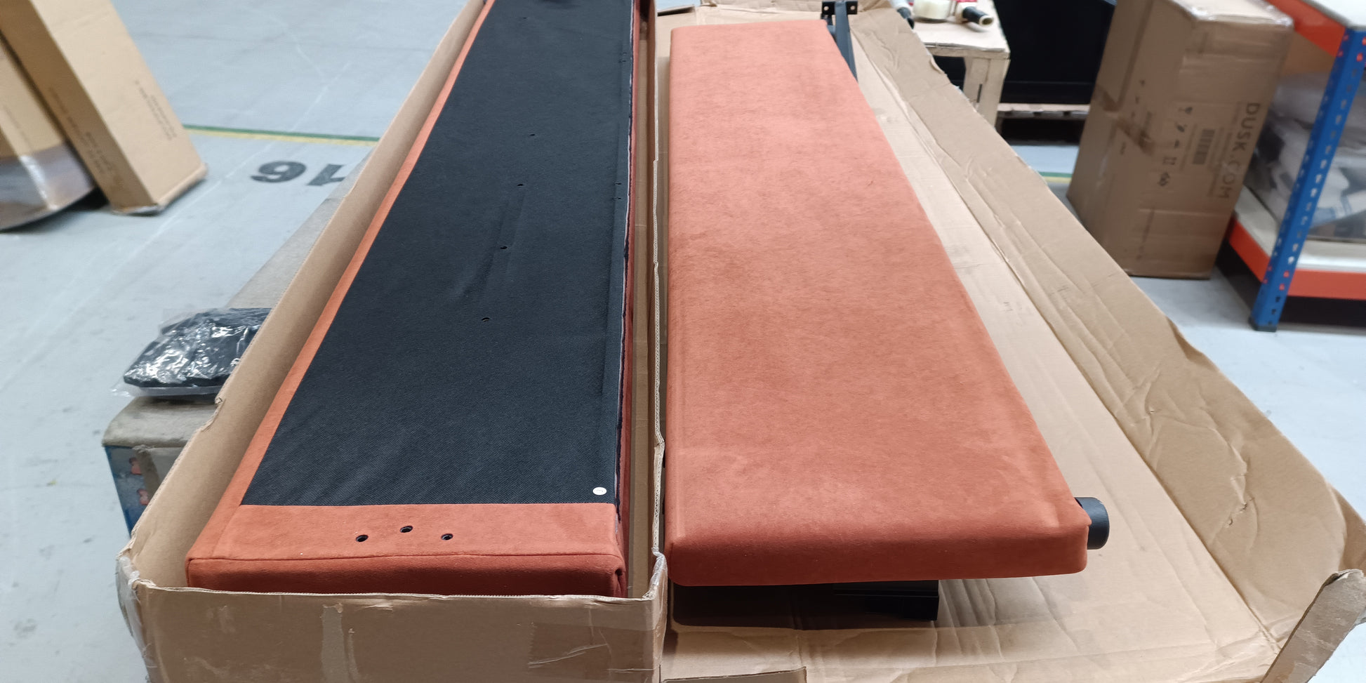 - Dusk Ascot Ottoman Storage Bed - Burnt Orange - King Size RRP £479 - All the fittings are missing, all the bed slats are missing and the slat caps, the lift mechanisms have been removed and are missing, the fabric base is missing.