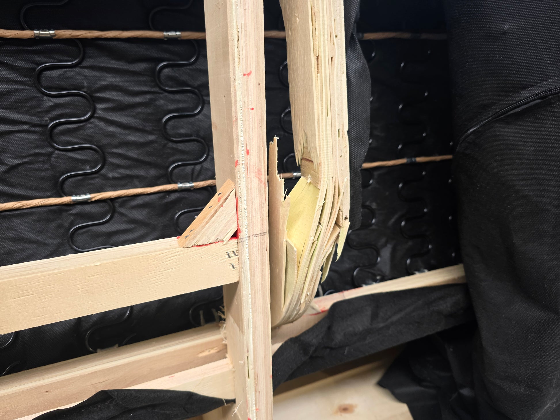 - Dusk Madison 3 Seater Sofa - Stone Grey RRP £759 - both seat supports snapped and seat fram not fitted correct