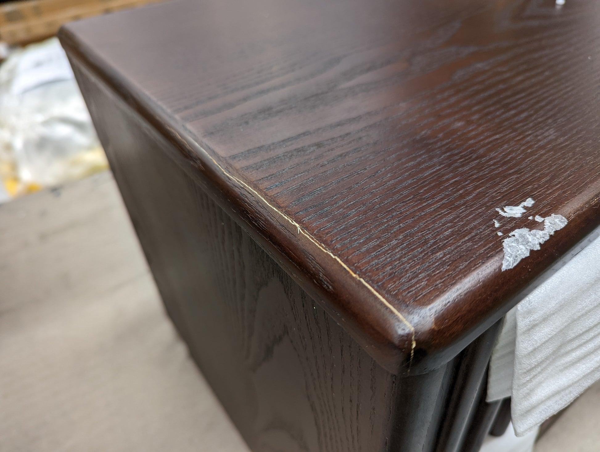 - Dusk Elena Wood Veneer 2 Drawer Bedside Table - Walnut RRP £190 - cabinet impact damaged