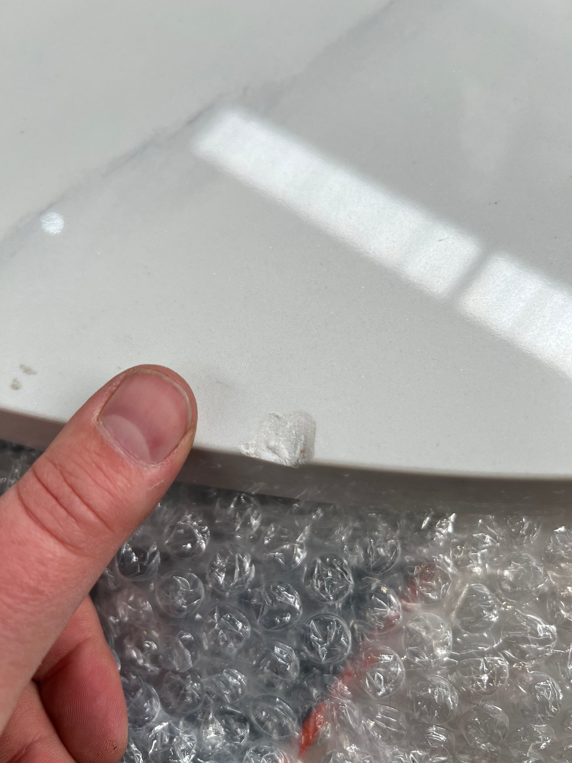 - Dusk Lila Marble Effect 90cm 2-3 Seater Dining Table White RRP £349 - chip to table edge