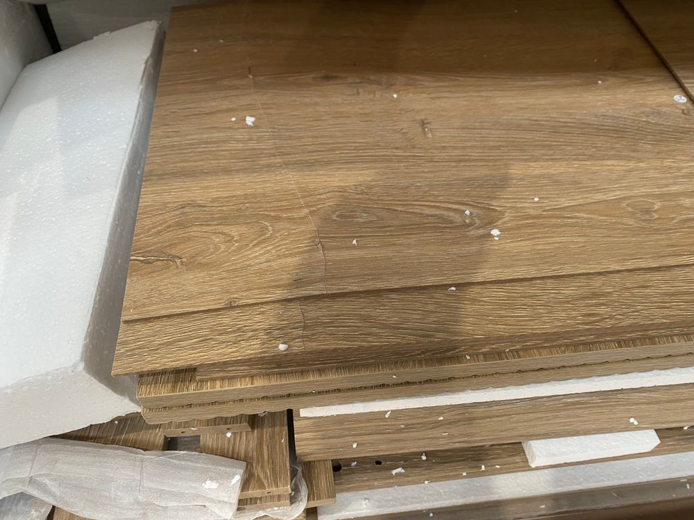 - Dusk Elena Wood Veneer Desk - Light Wood RRP £239 - All corners damaged, scratches all over top