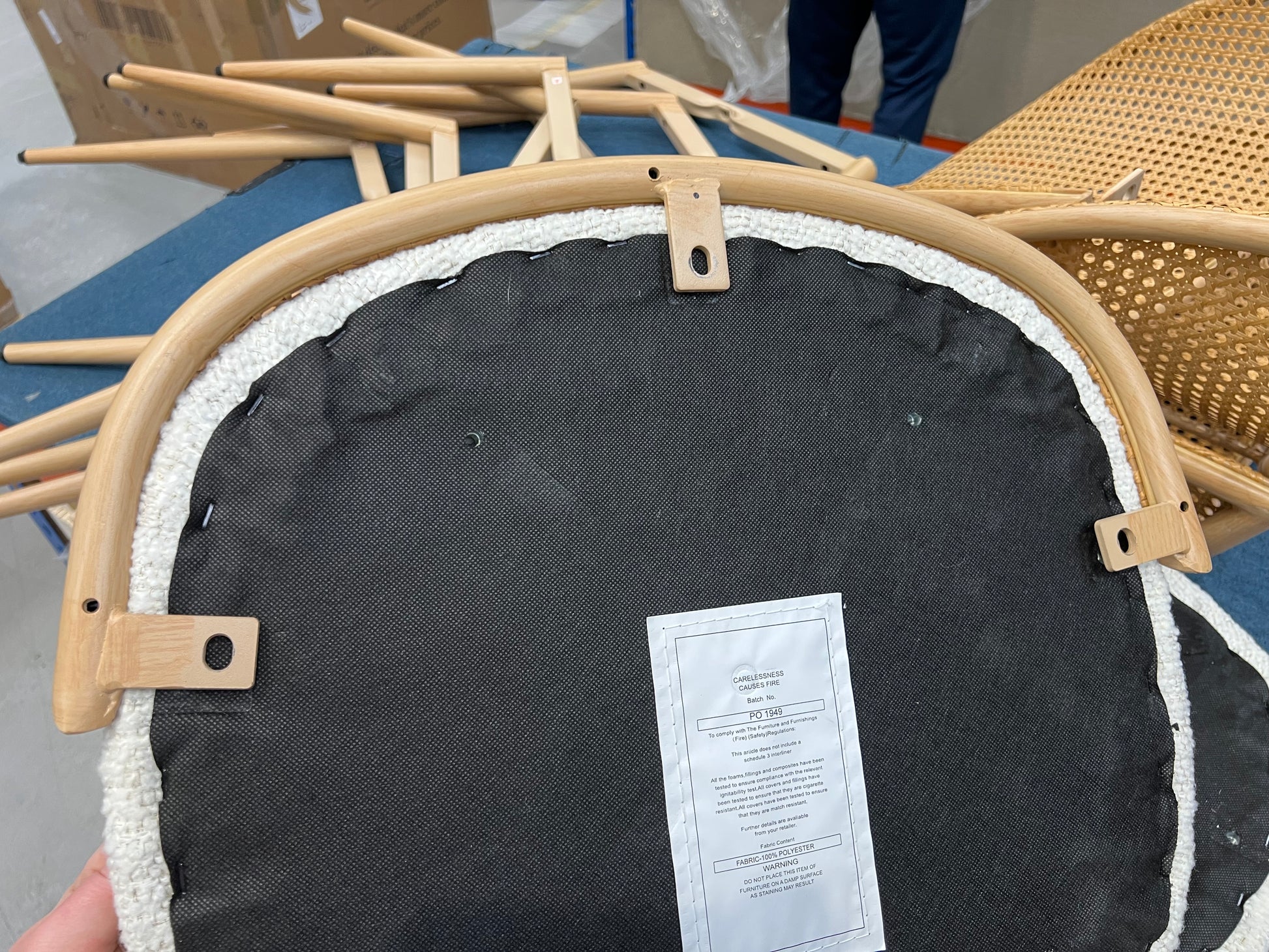 - Dusk Phoebe Set of 4 Dining Chairs - Boucle - Ivory/Natural RRP £398 - Bases of chair do not all fit to the back rest. Mismatched feet on the legs. Also some feet missing. No fittings. Seats are a little dirty from use.