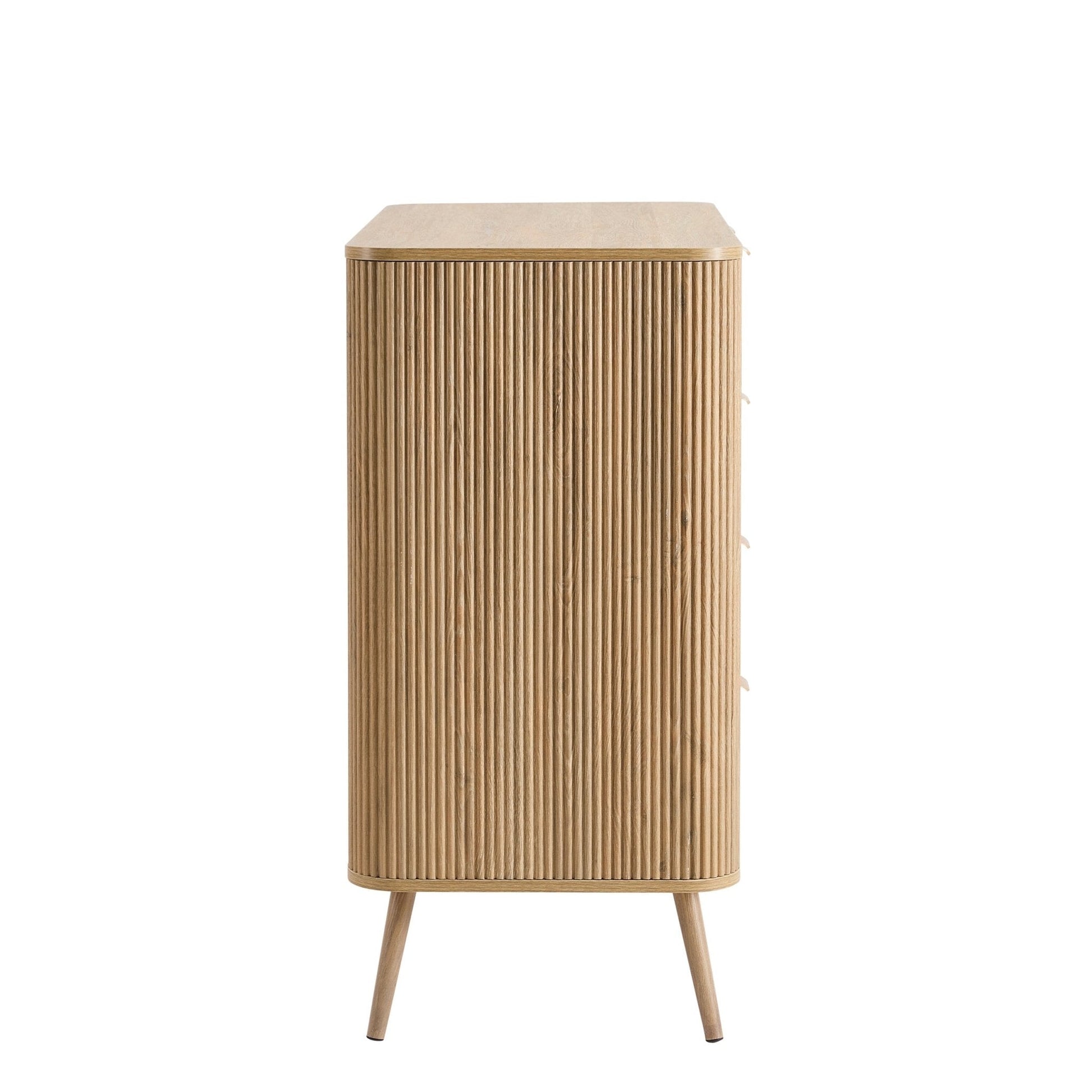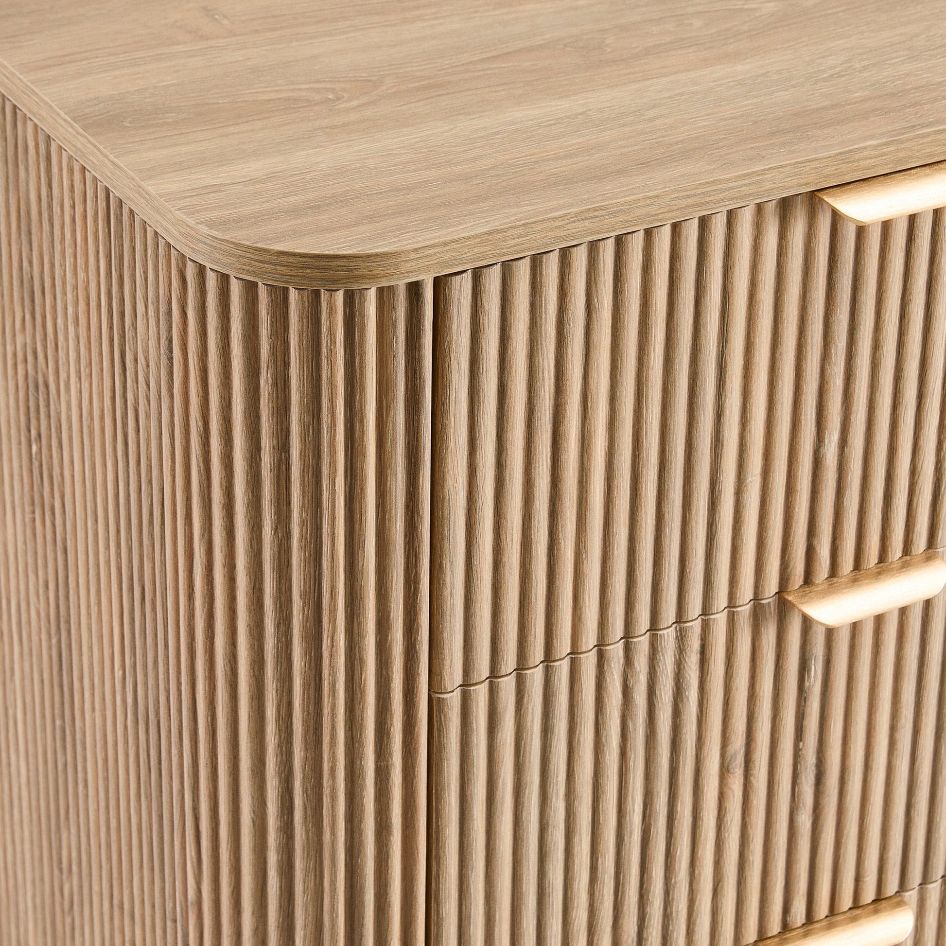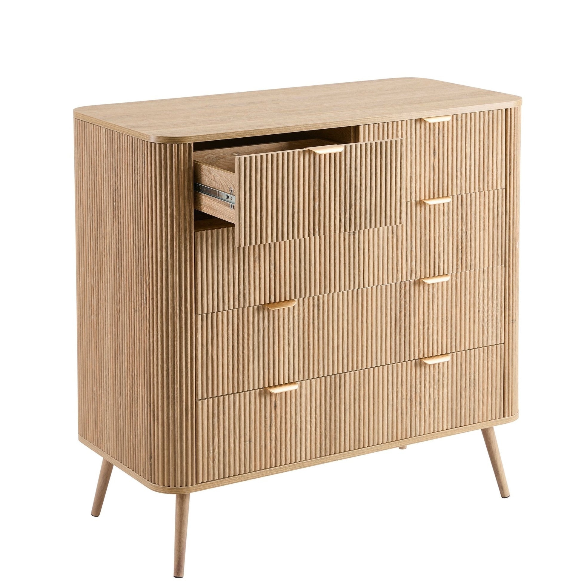 - Dusk Hattie 5 Drawer Chest - Light Wood RRP £249 - Pre assembled, Parts missing damage to the laminate on the wood.