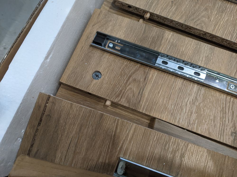 - Dusk Elena Wood Veneer 2 Drawer Bedside Table - Light Wood RRP £190 RRP £190 - has split along top/side edge and drawers dont close properly