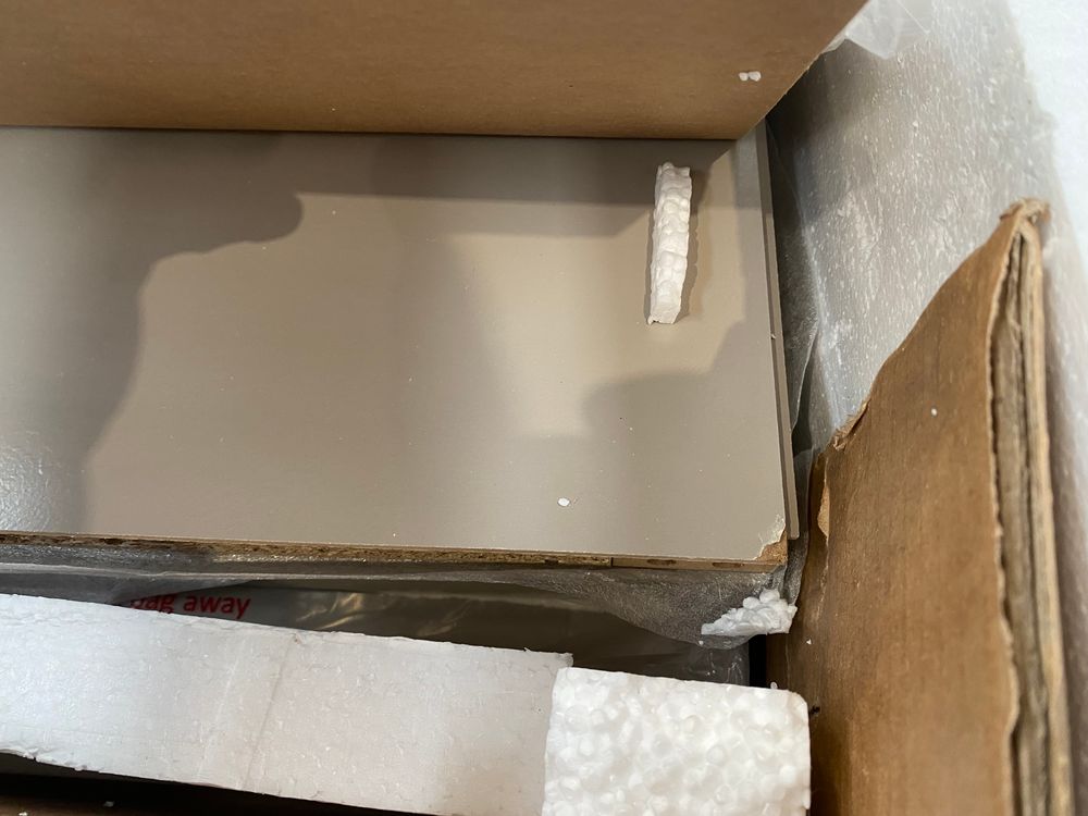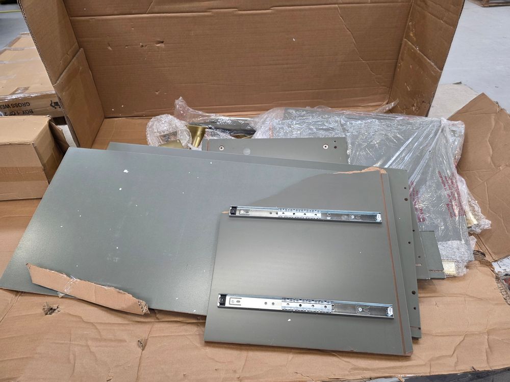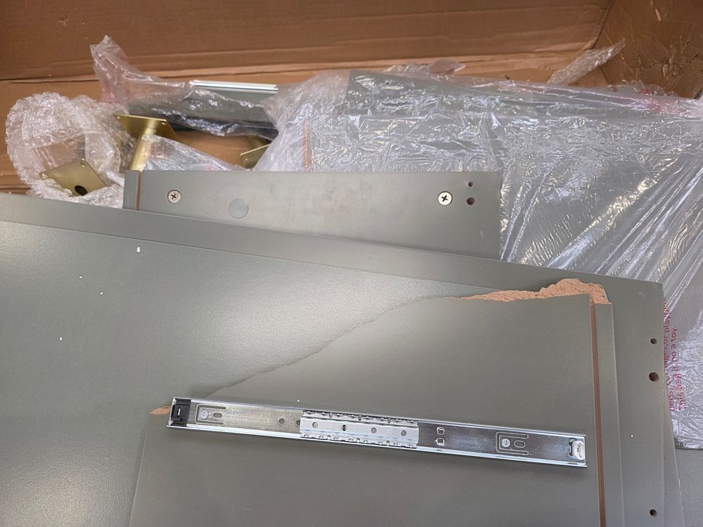 hardware missing and side pannel snapped in half