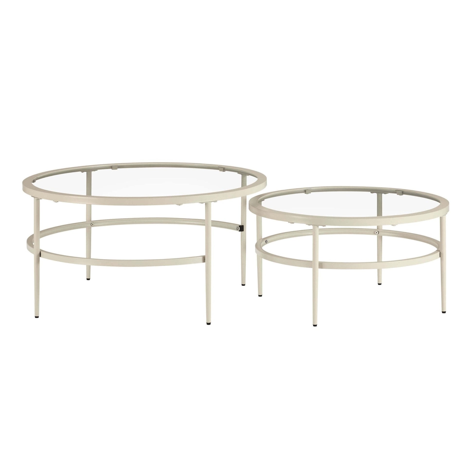 DUS-GOL-07188 Grade-B Dusk Glass Round Nesting Coffee Tables - Stone RRP £129