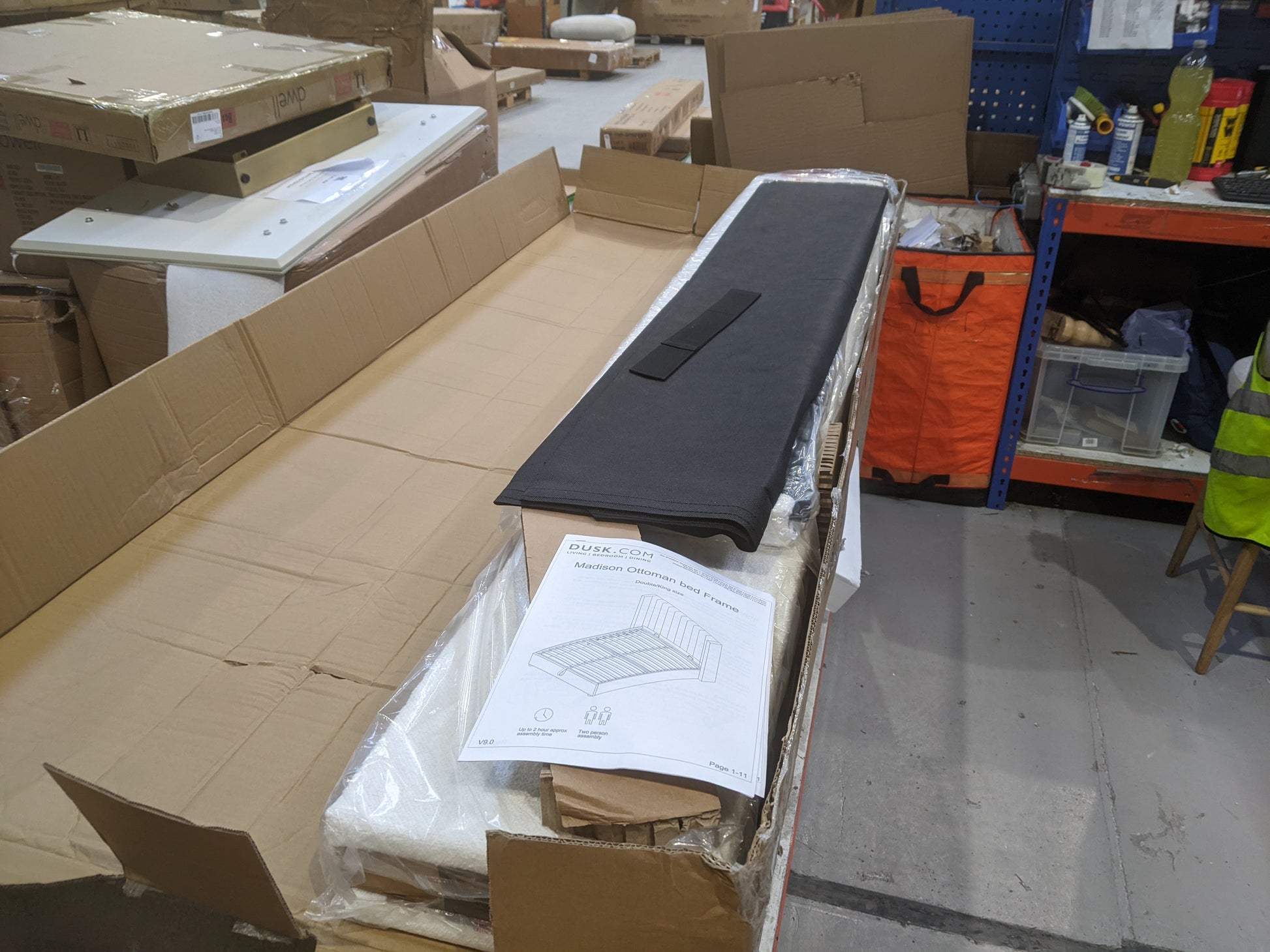 - Dusk Ascot Ottoman King Size Storage Bed - Natural RRP £349 - The head bored is covered in hairs , parts are missing . THere are no slats , slat holders. It's just the outer frane and no hardware .