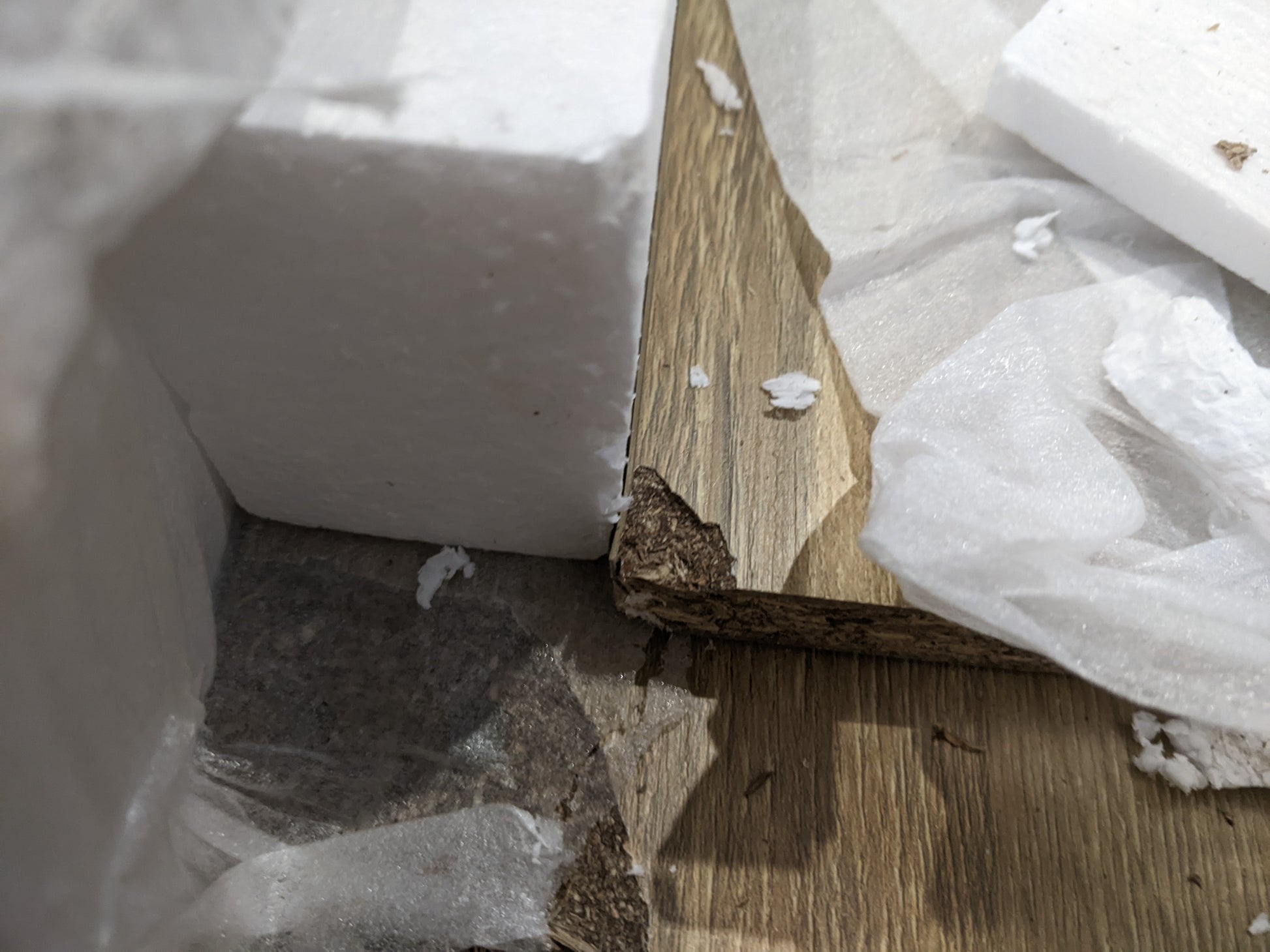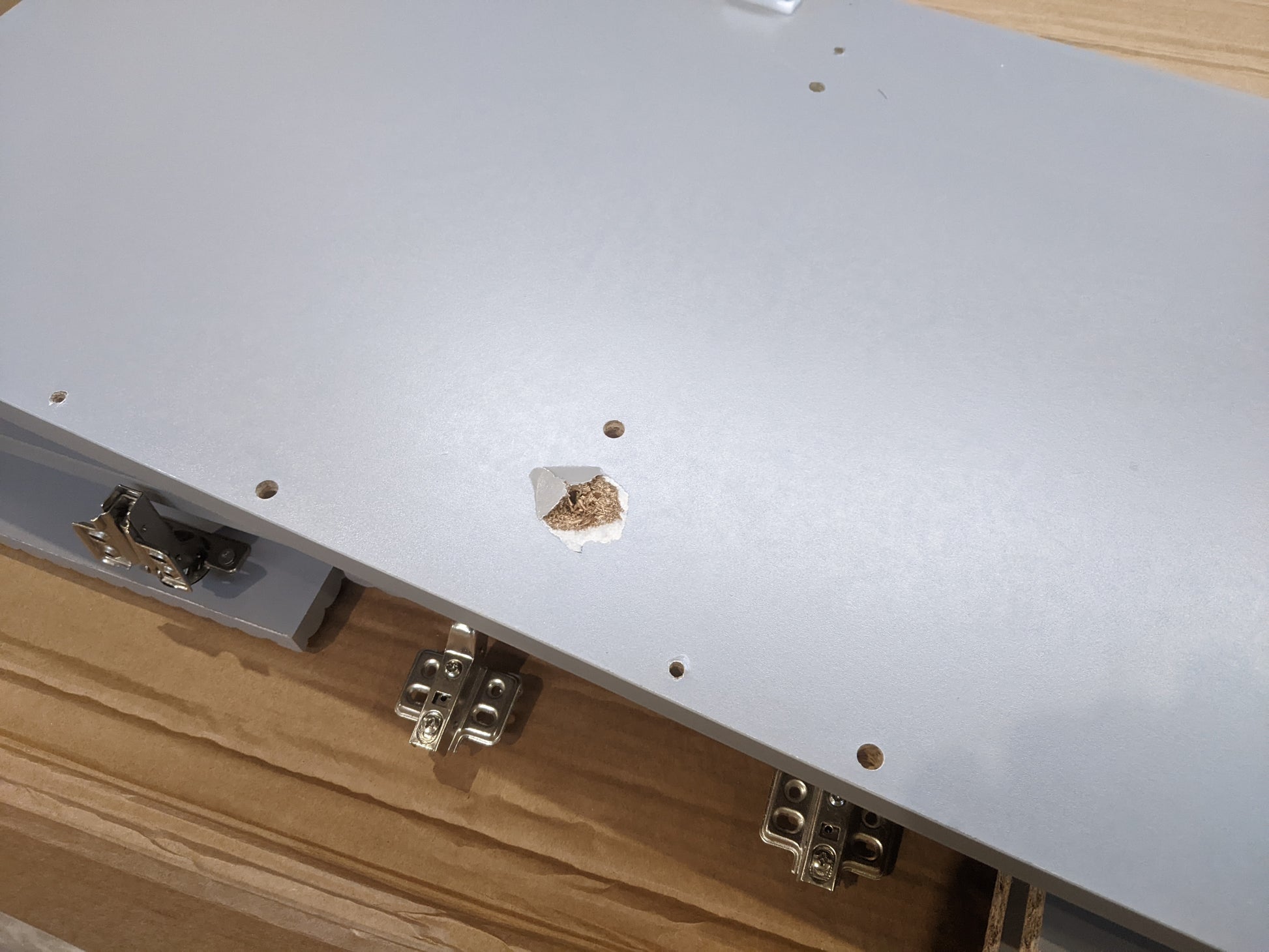 Damage to corner of table top and a second panel .