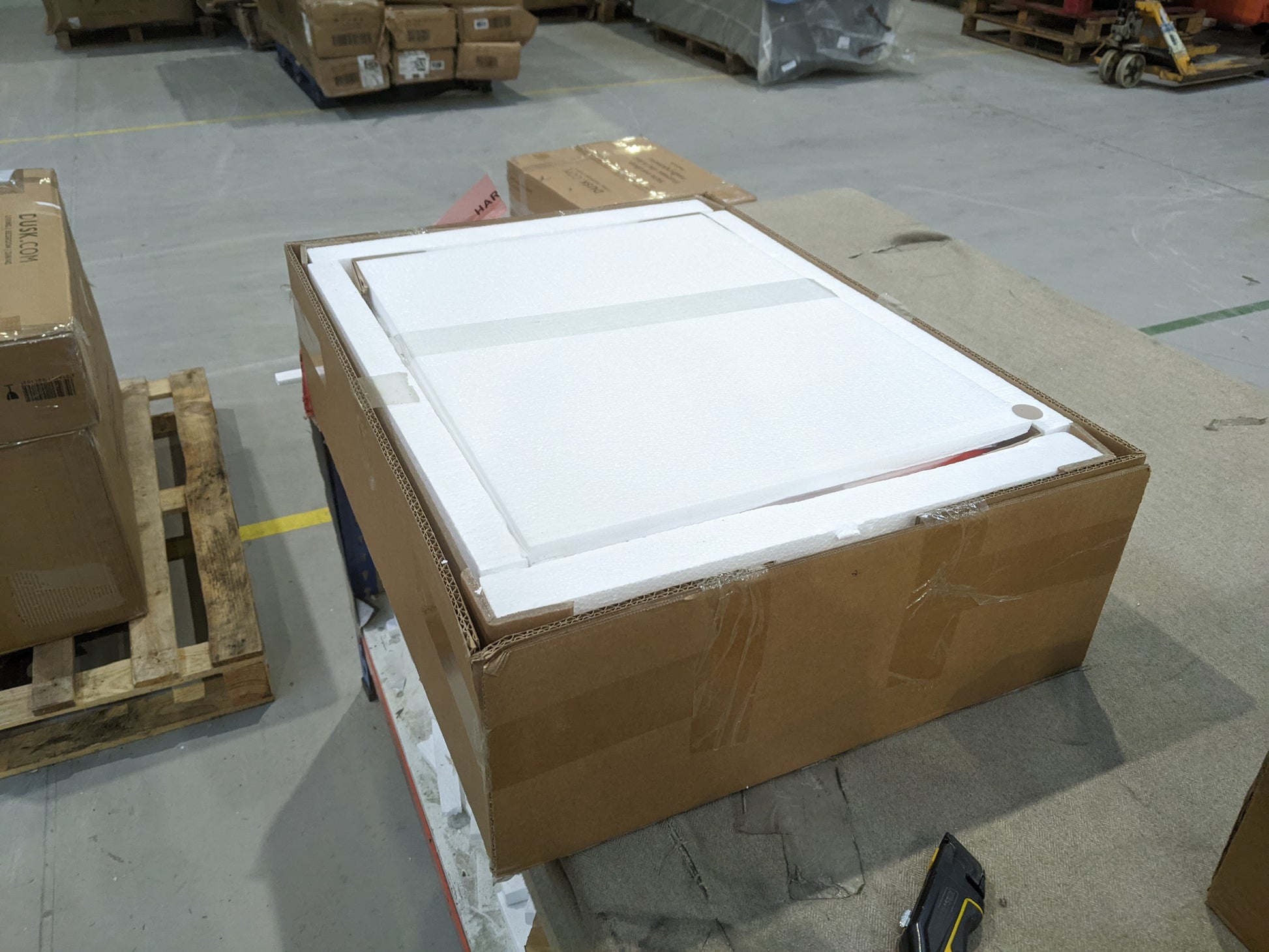 Empty pallets can be left on site when purchases are collected, although this is not a requirement. All other packaging is purchased with the items and is the property of the buyer, as such it must be taken when the order is collected.