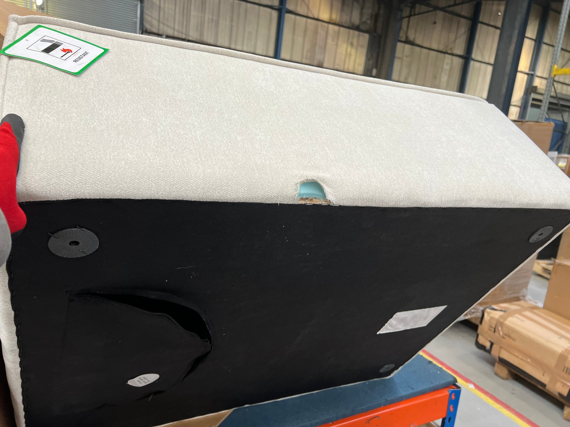 fabric ripped, frame split