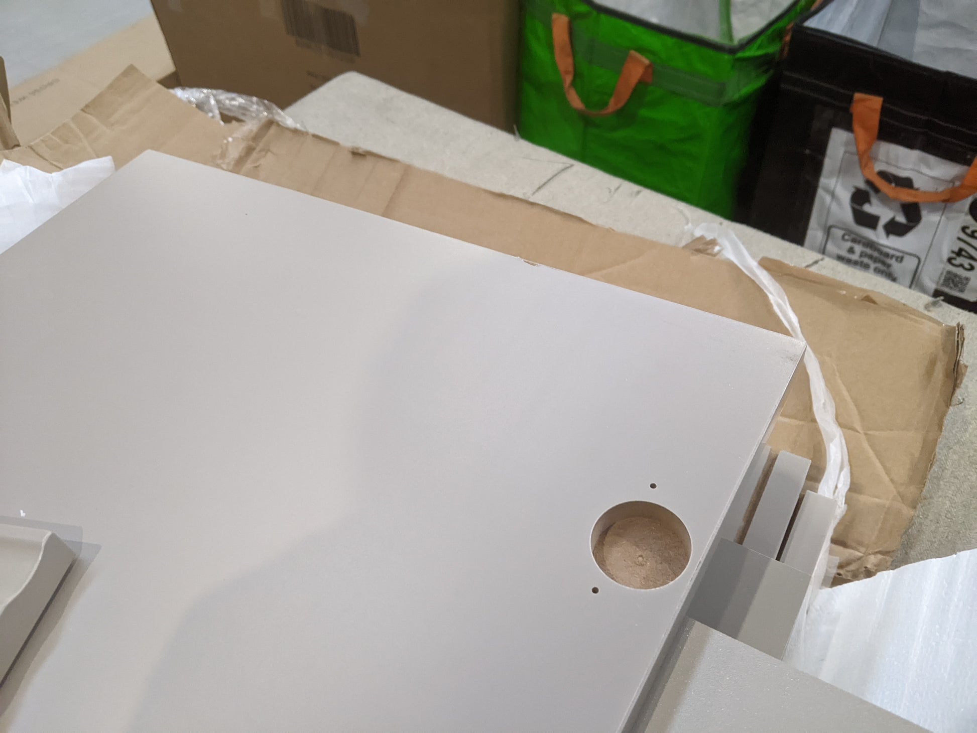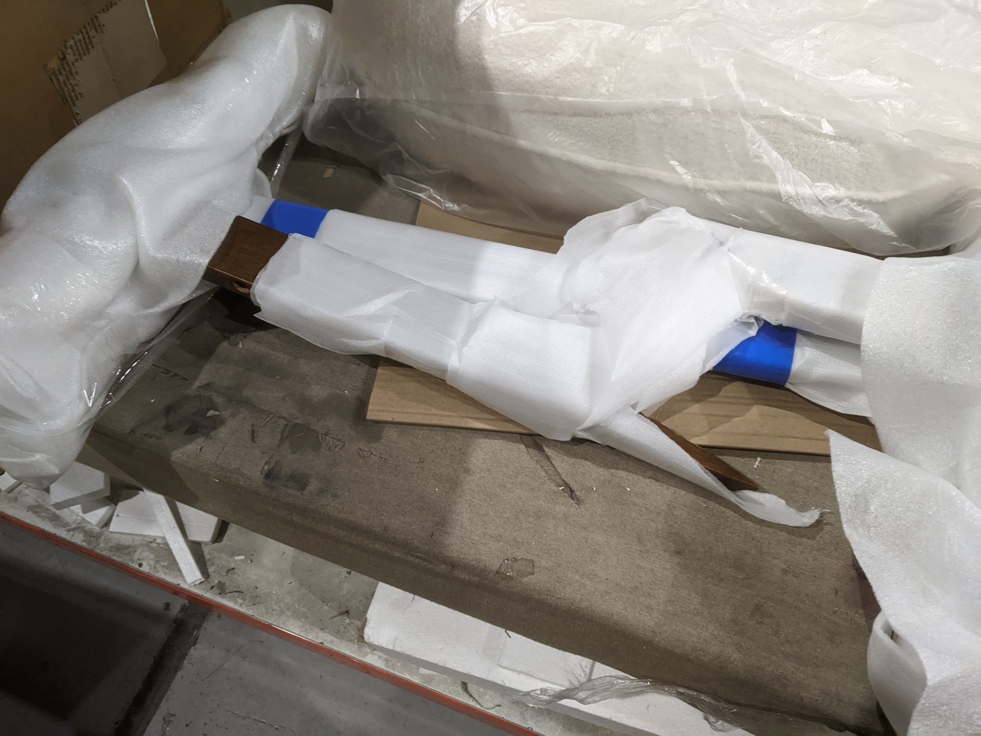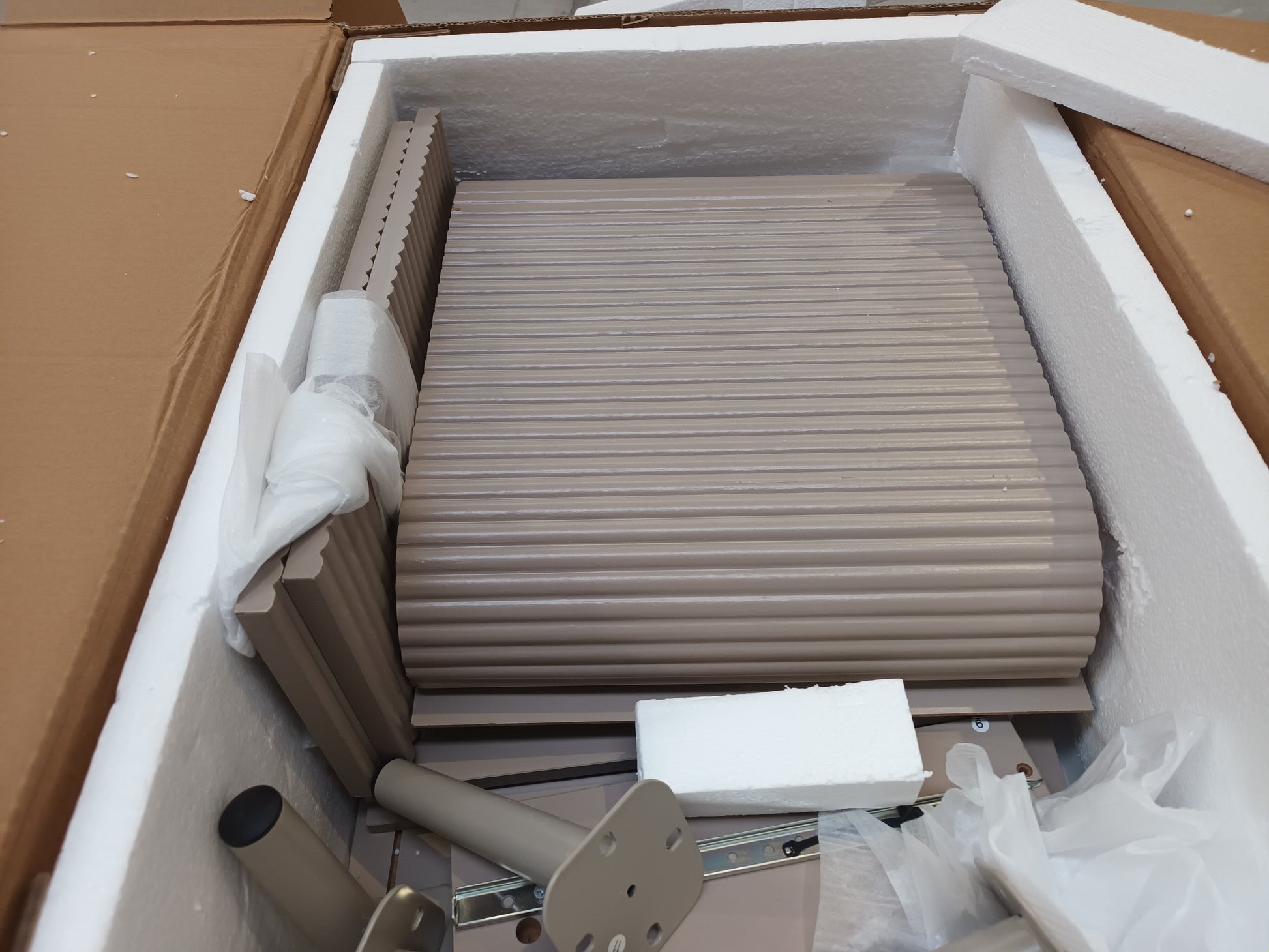Missing end panel. Other end panel damaged. No fittings