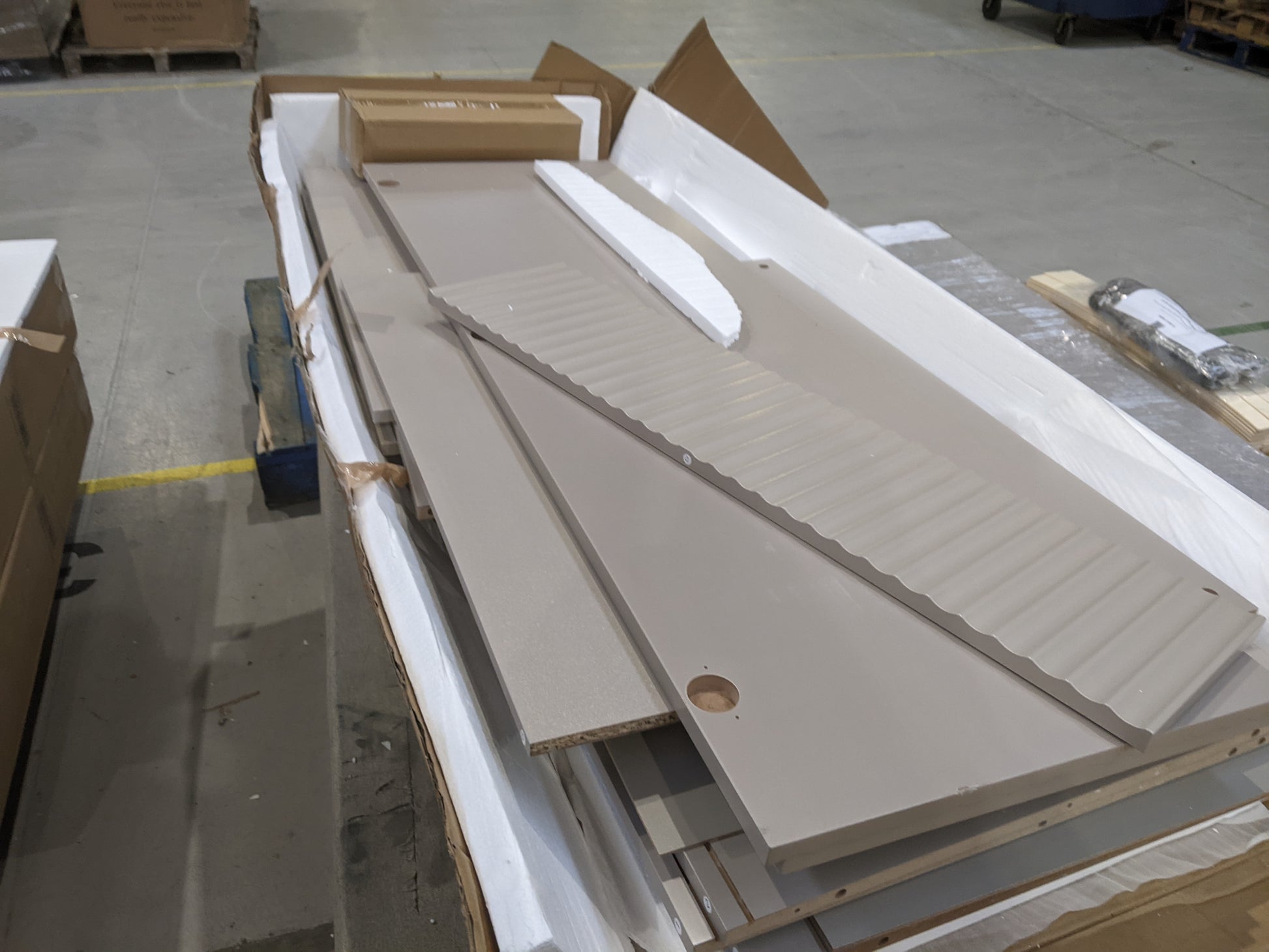Empty pallets can be left on site when purchases are collected, although this is not a requirement. All other packaging is purchased with the items and is the property of the buyer, as such it must be taken when the order is collected.