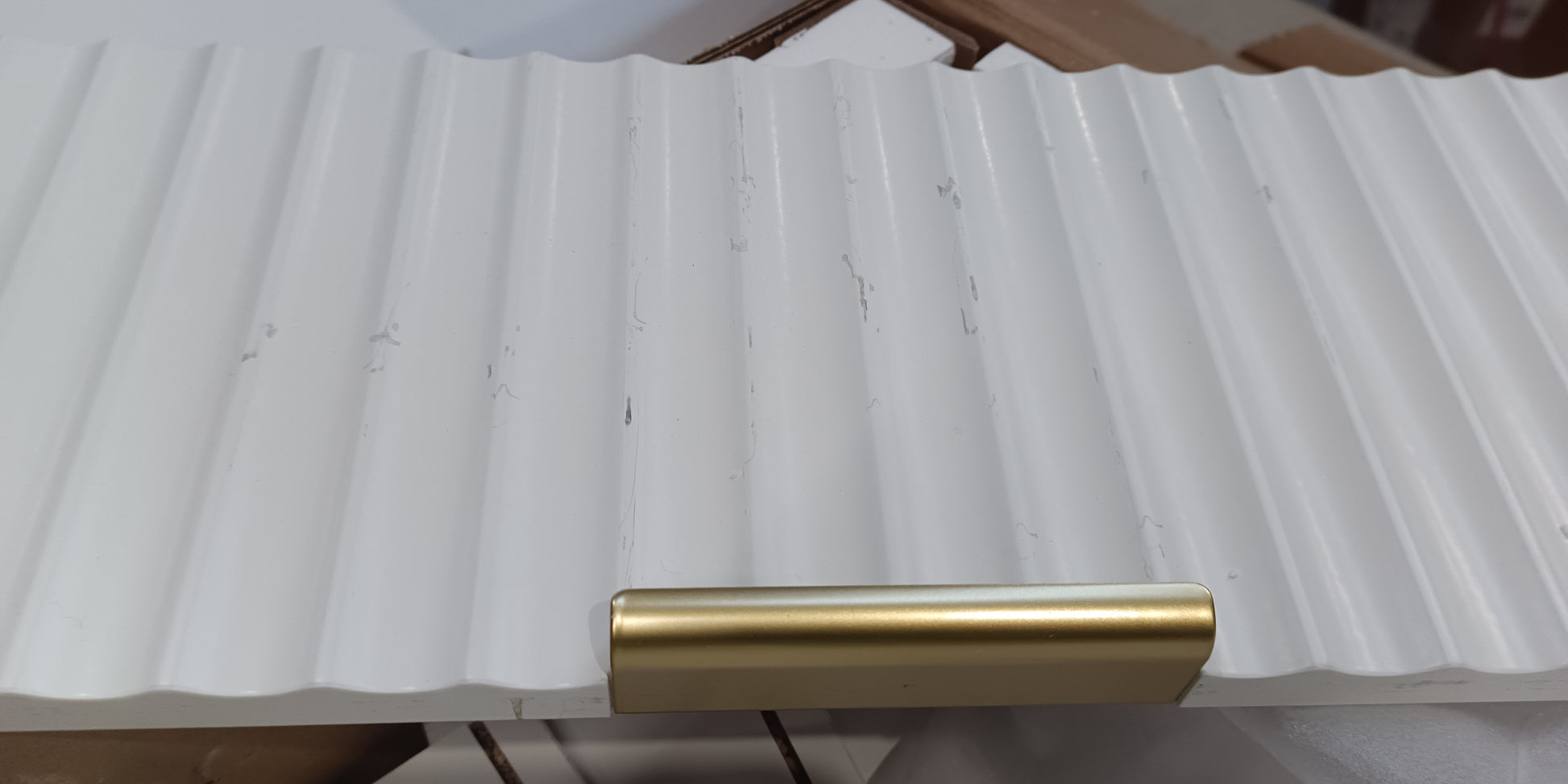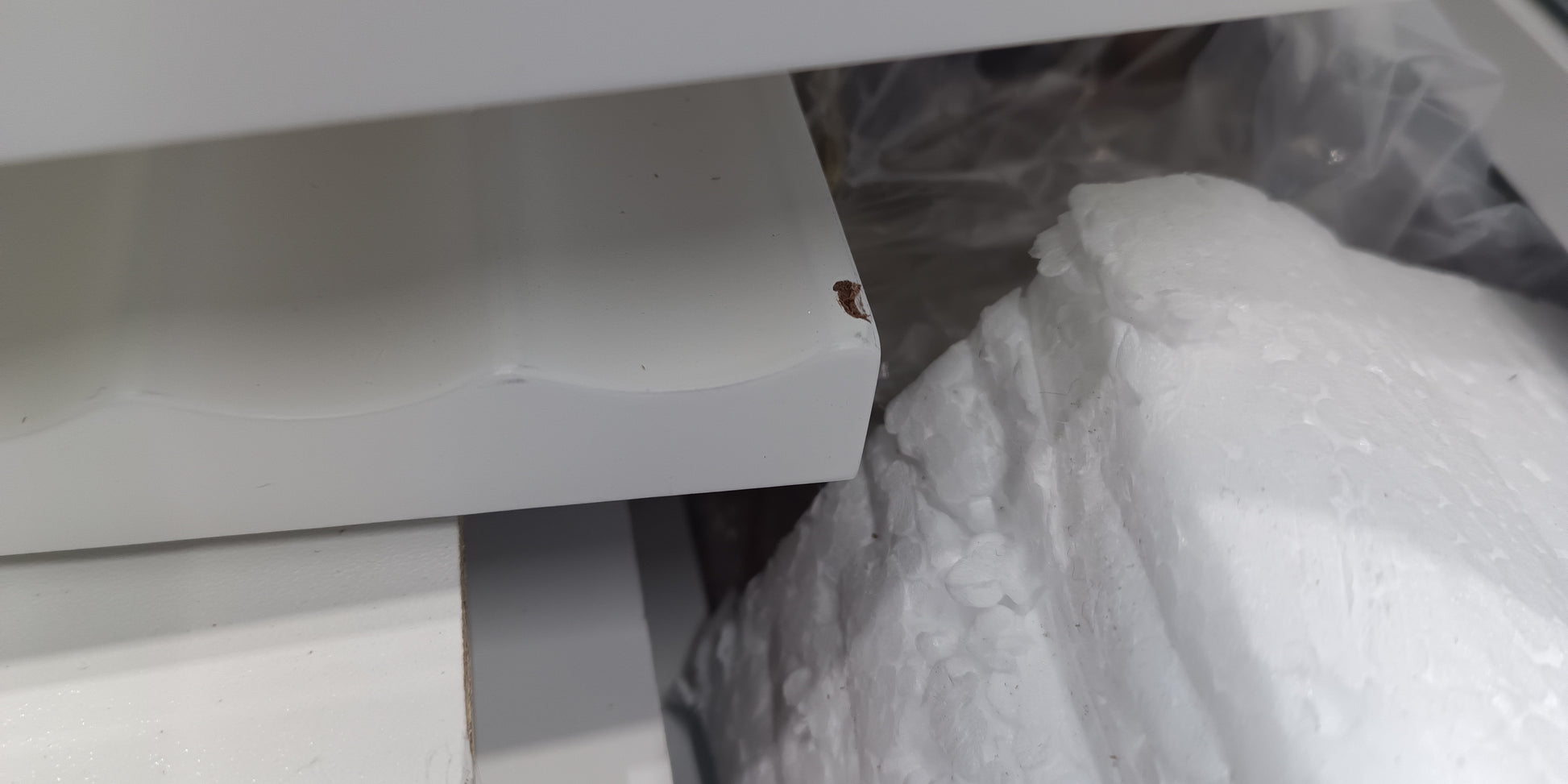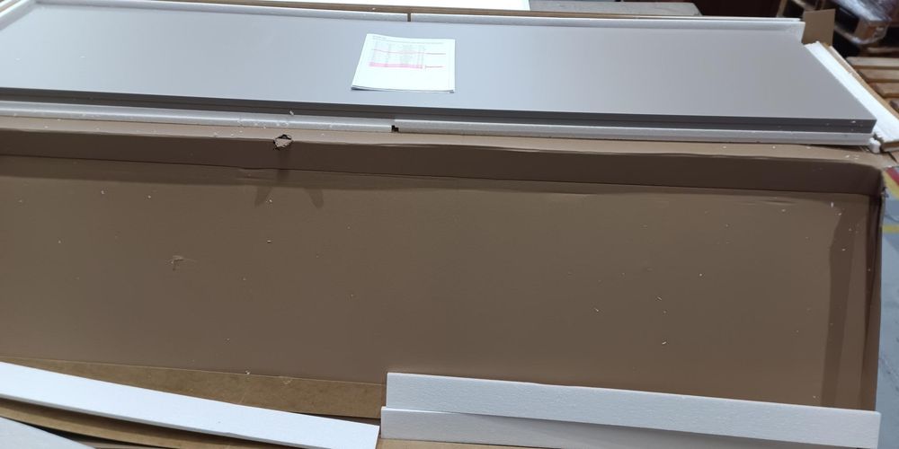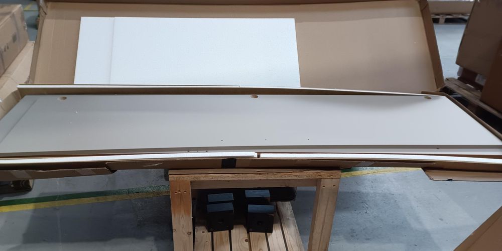 Preassembled badly, many damged parts particularly on face sides of the drawer fronts, all the fittings are also missing.