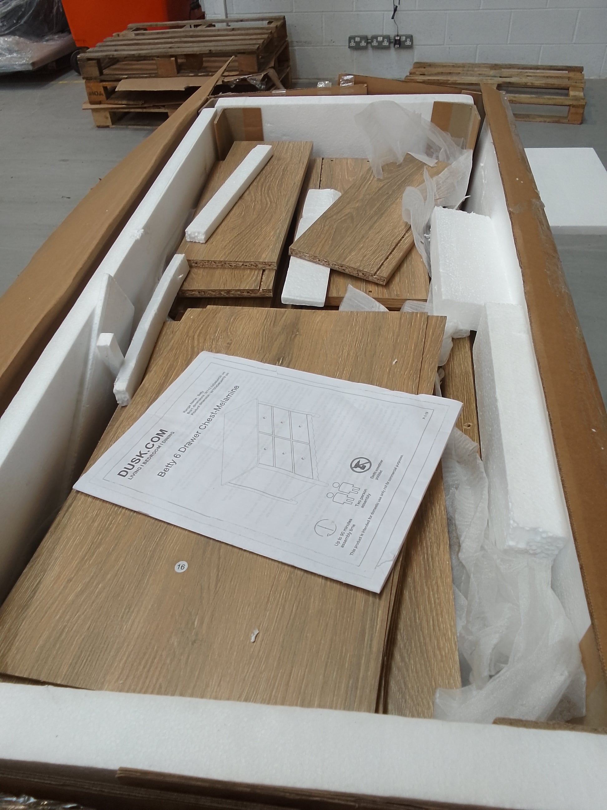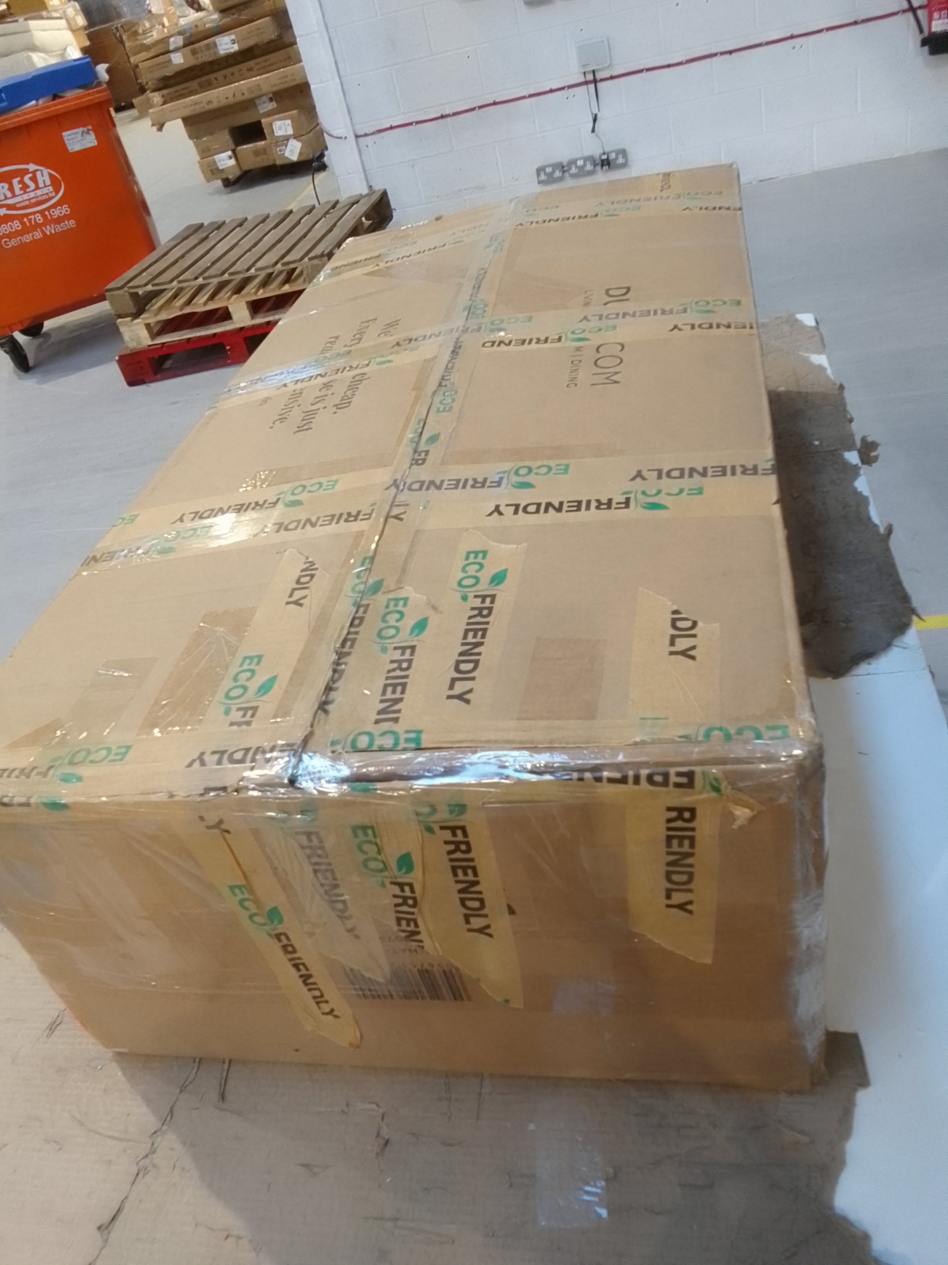 Empty pallets can be left on site when purchases are collected, although this is not a requirement. All other packaging is purchased with the items and is the property of the buyer, as such it must be taken when the order is collected.