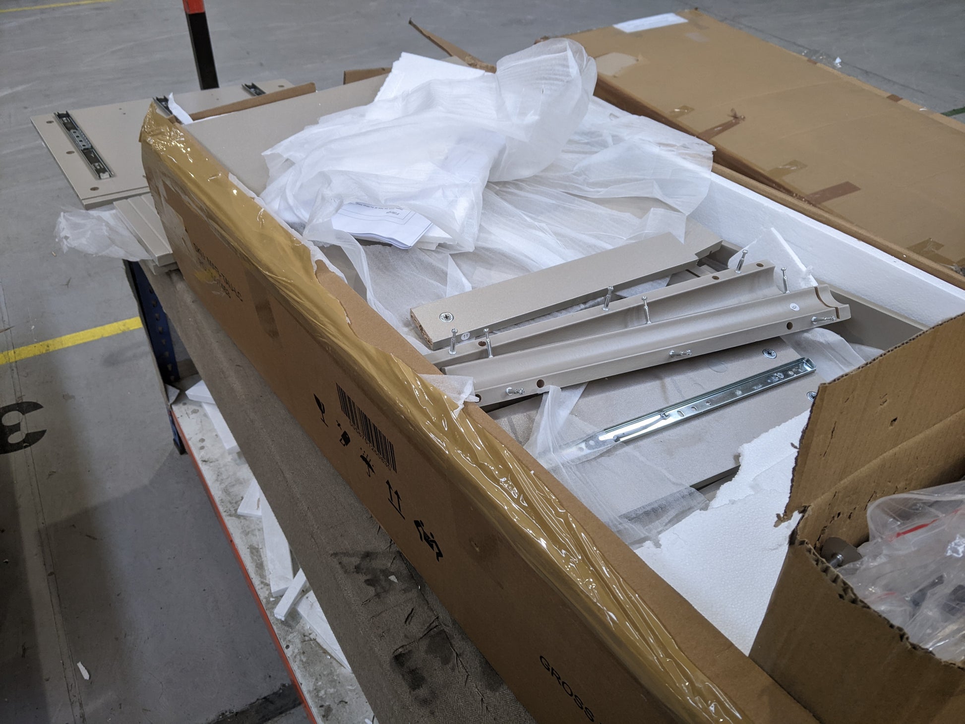 Empty pallets can be left on site when purchases are collected, although this is not a requirement. All other packaging is purchased with the items and is the property of the buyer, as such it must be taken when the order is collected.