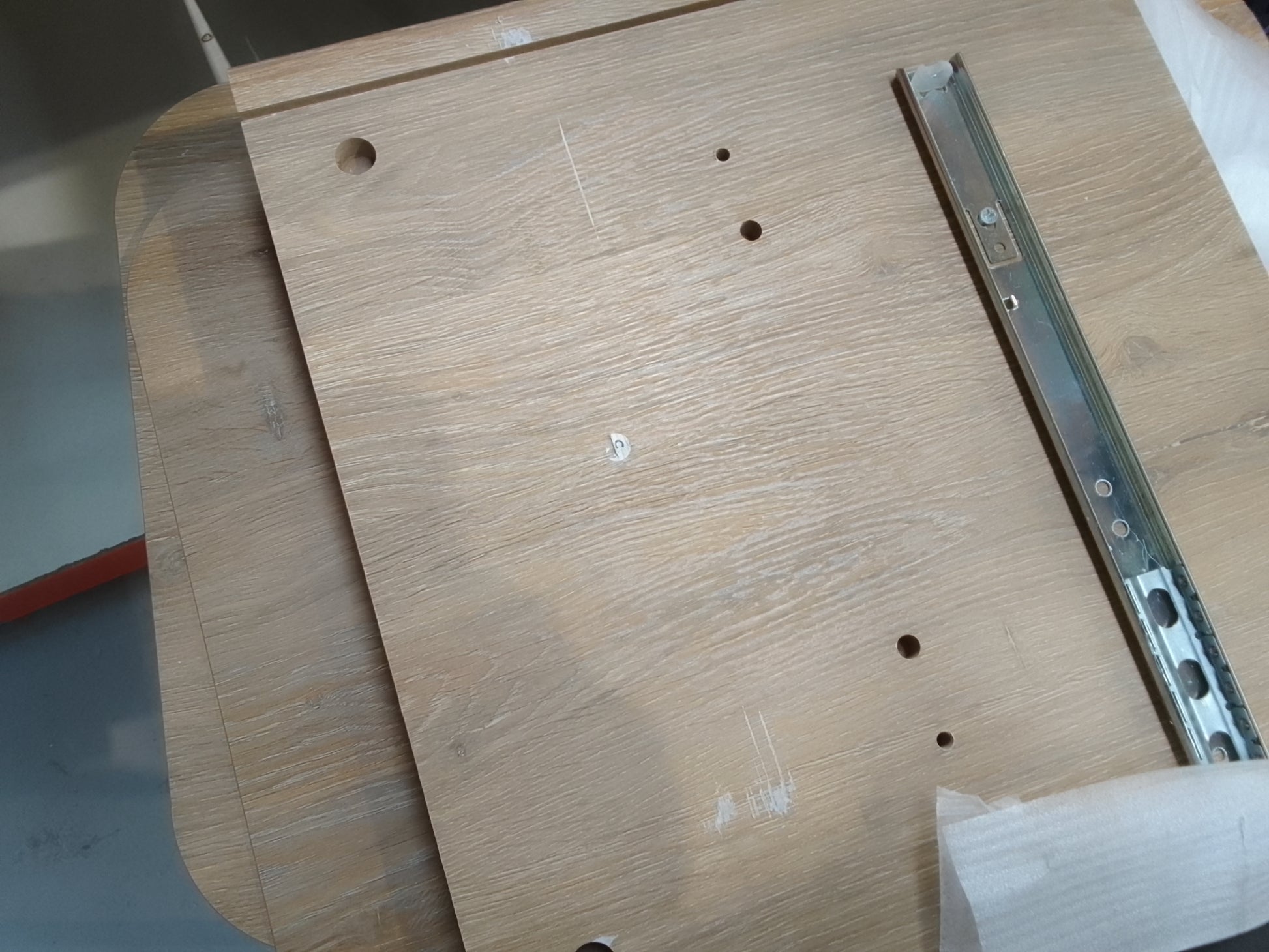 item is damaged on side pannel draw guide is ripped off and there are no fixings/hardware present