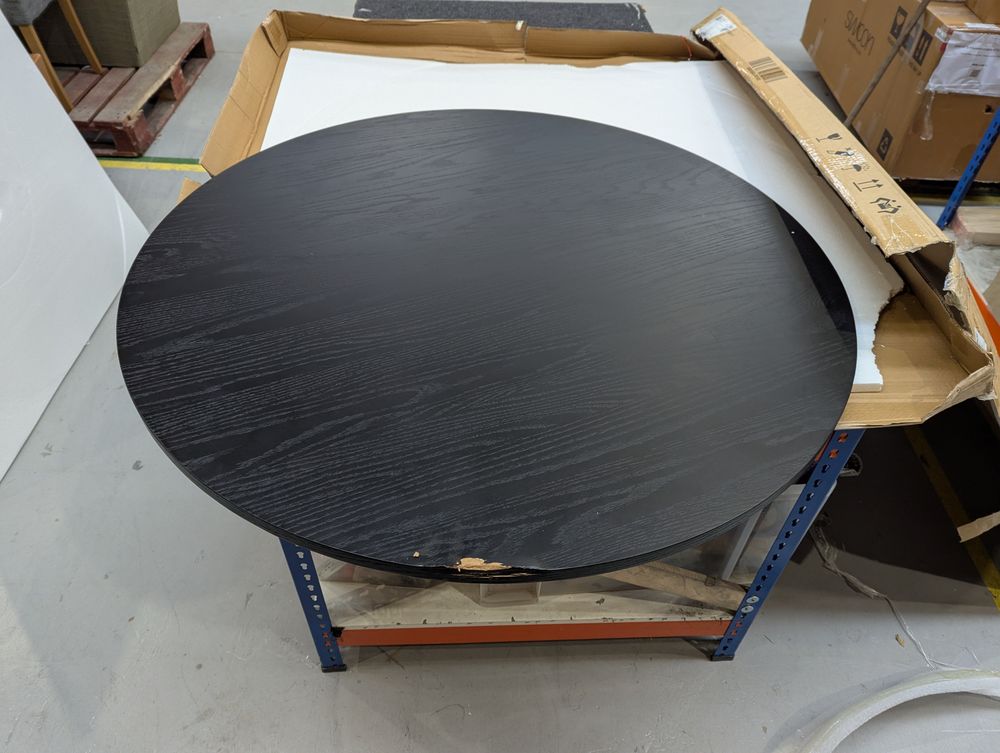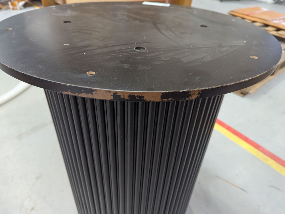 table is missing fittings and has damage to top and base