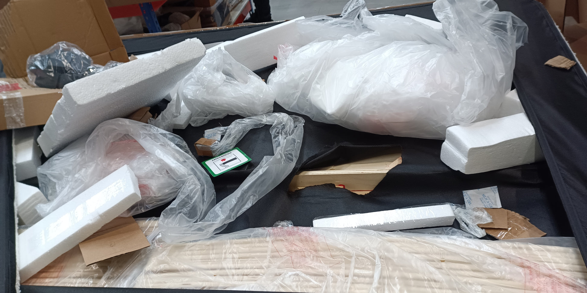 Empty pallets can be left on site when purchases are collected, although this is not a requirement. All other packaging is purchased with the items and is the property of the buyer, as such it must be taken when the order is collected.