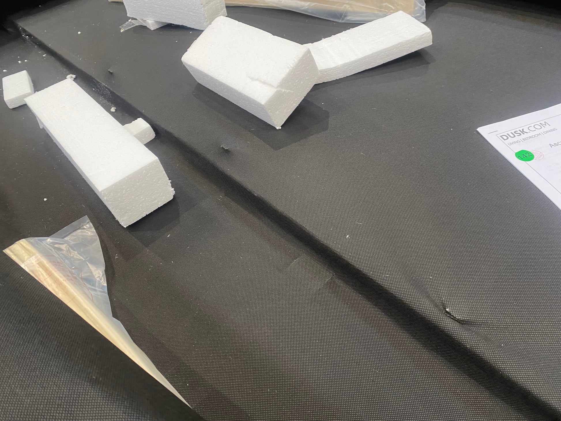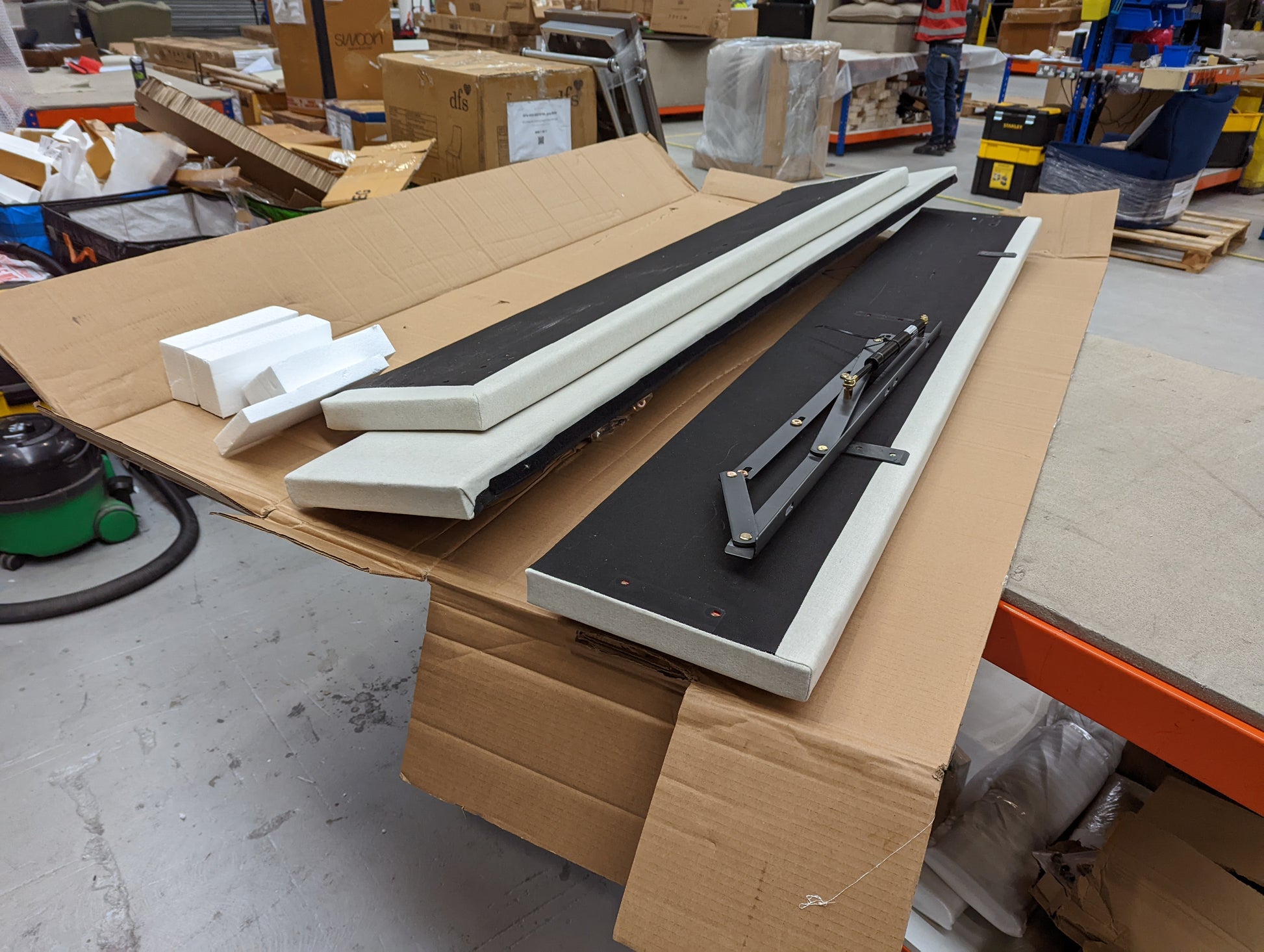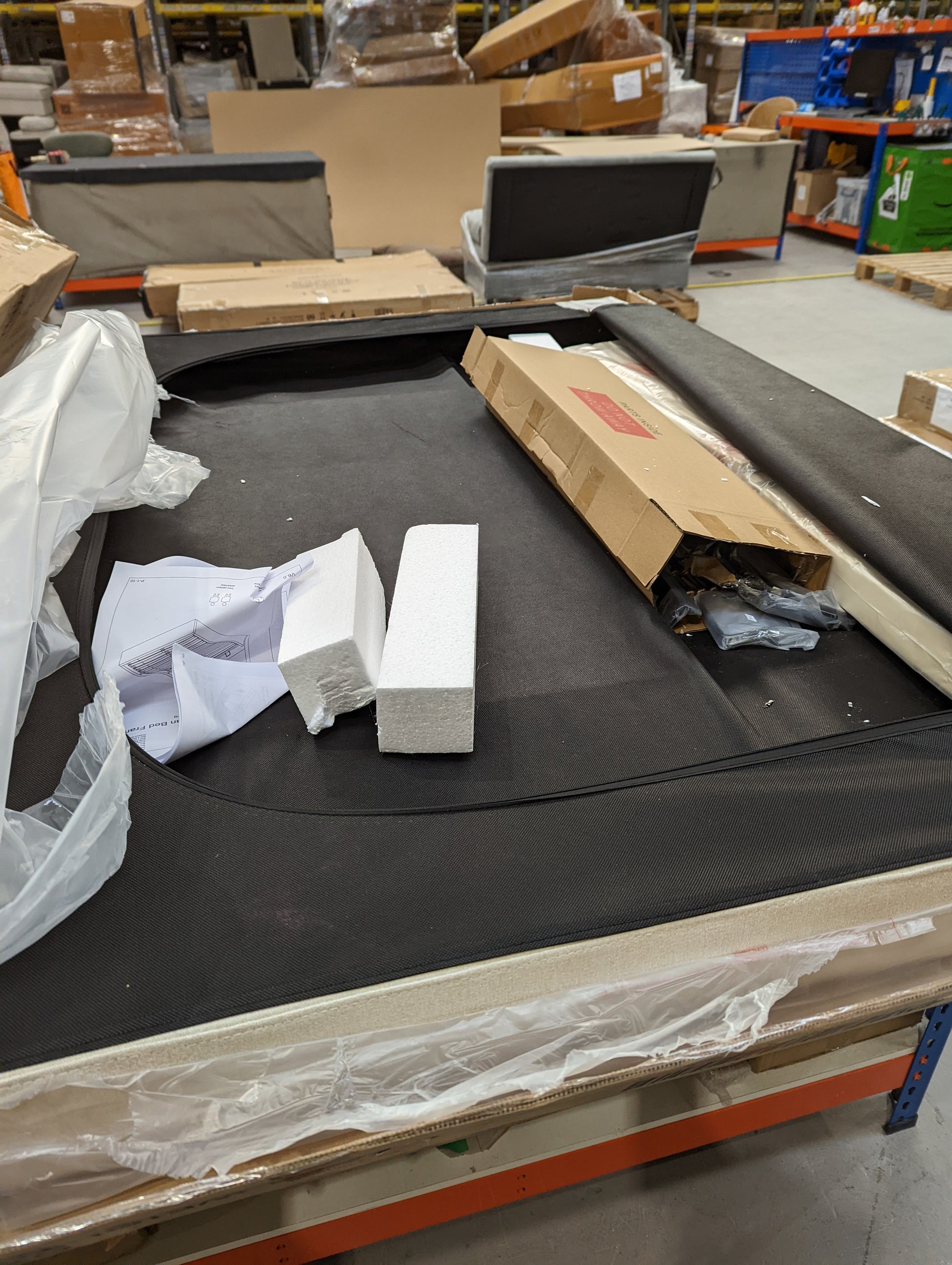 missing all ottoman frame, fixings/hardware and headboard has snapped inside